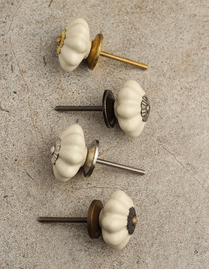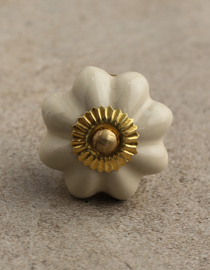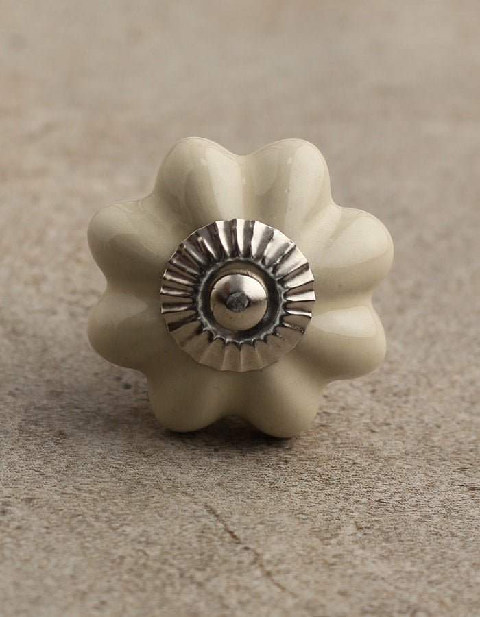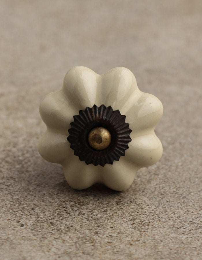 Cream Color Handmade Flower Shaped Ceramic Drawer Knob