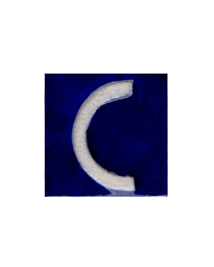 White C alphabet blue tile.. Unique, hand painted tiles for your kitchen or other tiling project. Tile is 2x2" in size. Delivery time is normally 5 to 7 business days. If the item is out of stock, production and delivery will take 2 to 3 weeks