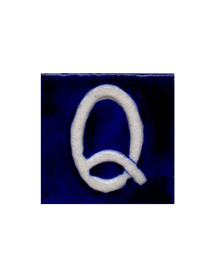 White Q alphabet blue tile (2x2)