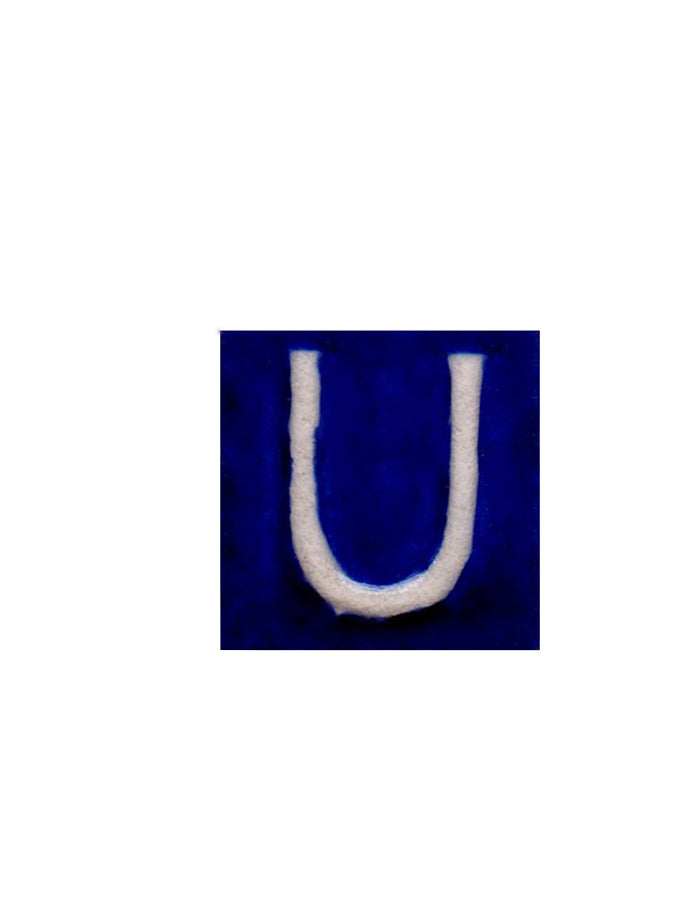 White U alphabet blue tile (2x2)