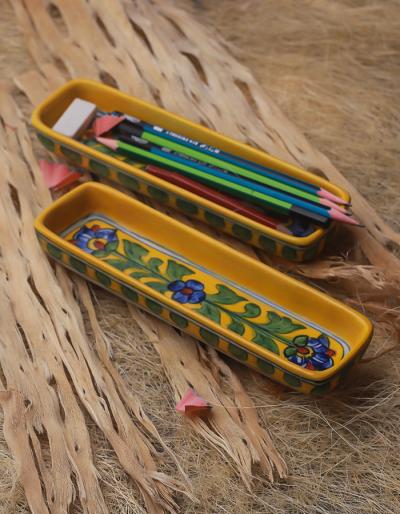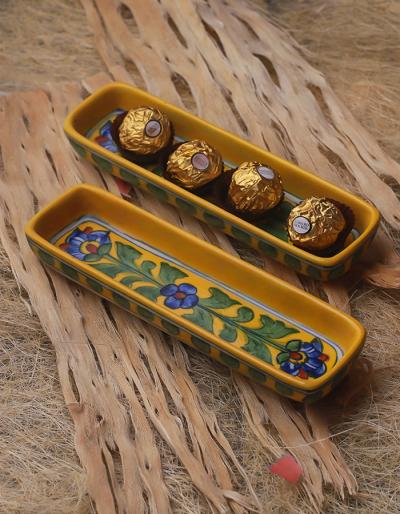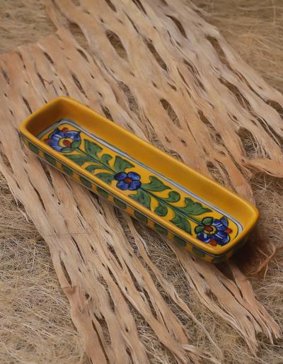 Yellow Blue Green Floral Design Pencil Plate 8 inch (Set of 2 pieces)