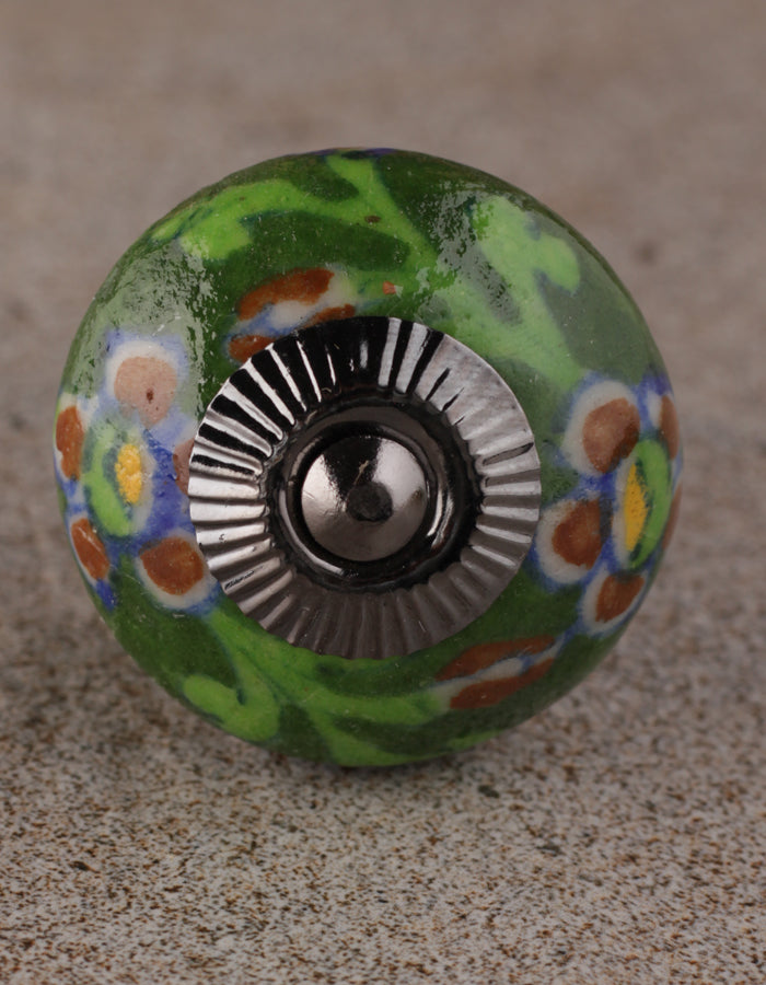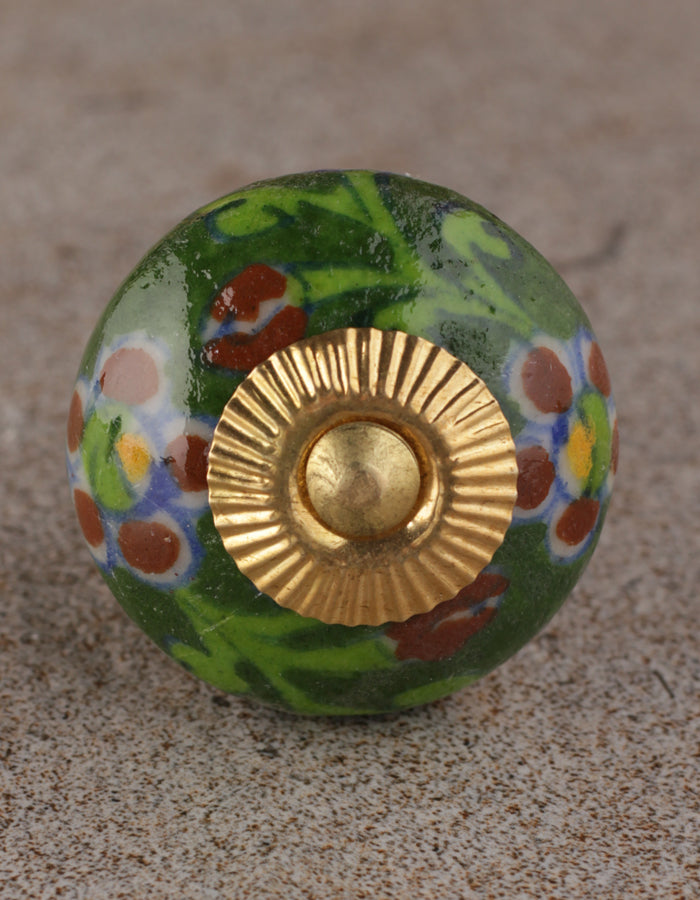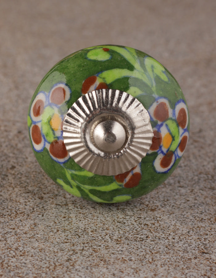 Stylish Maroon Flower And Leaf Design On Dark Green Ceramic Drawer Knob