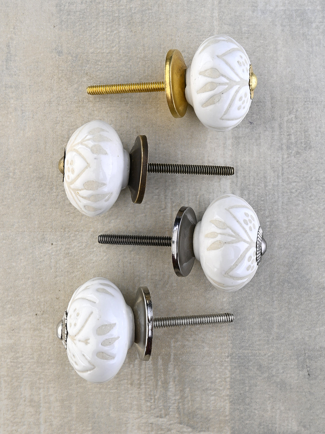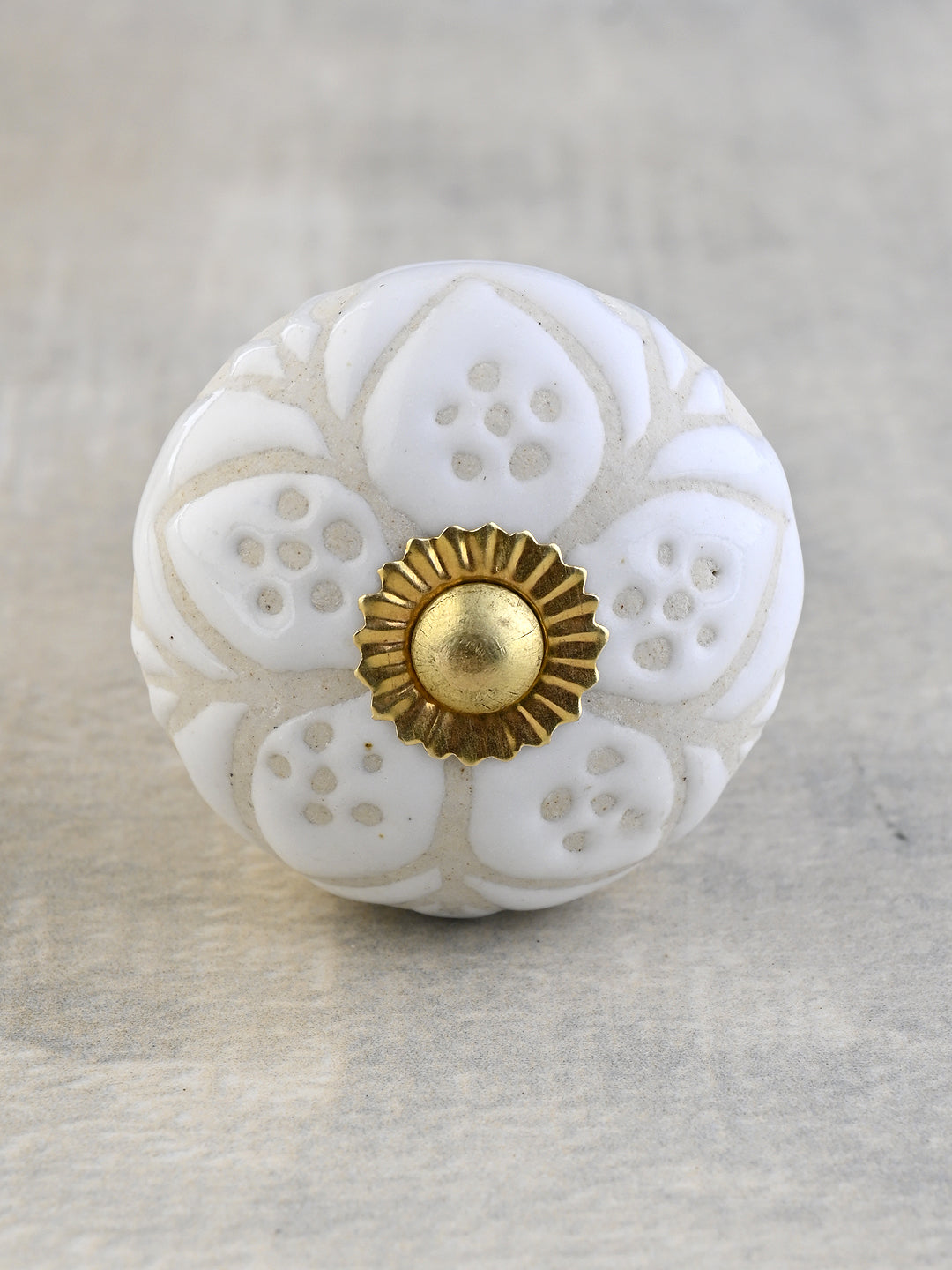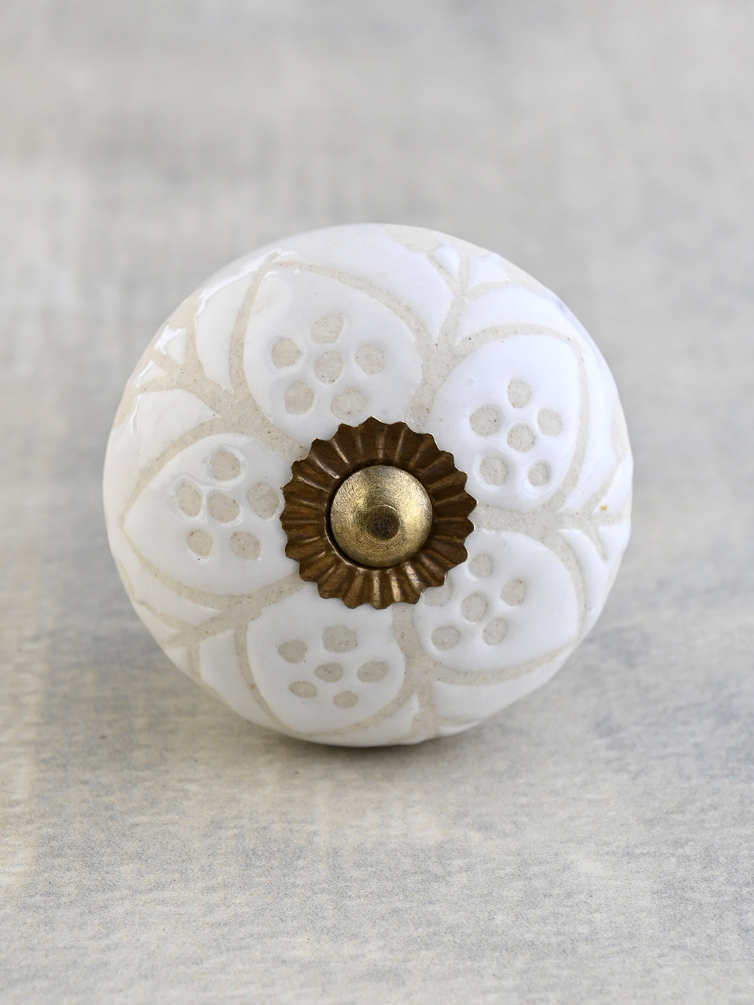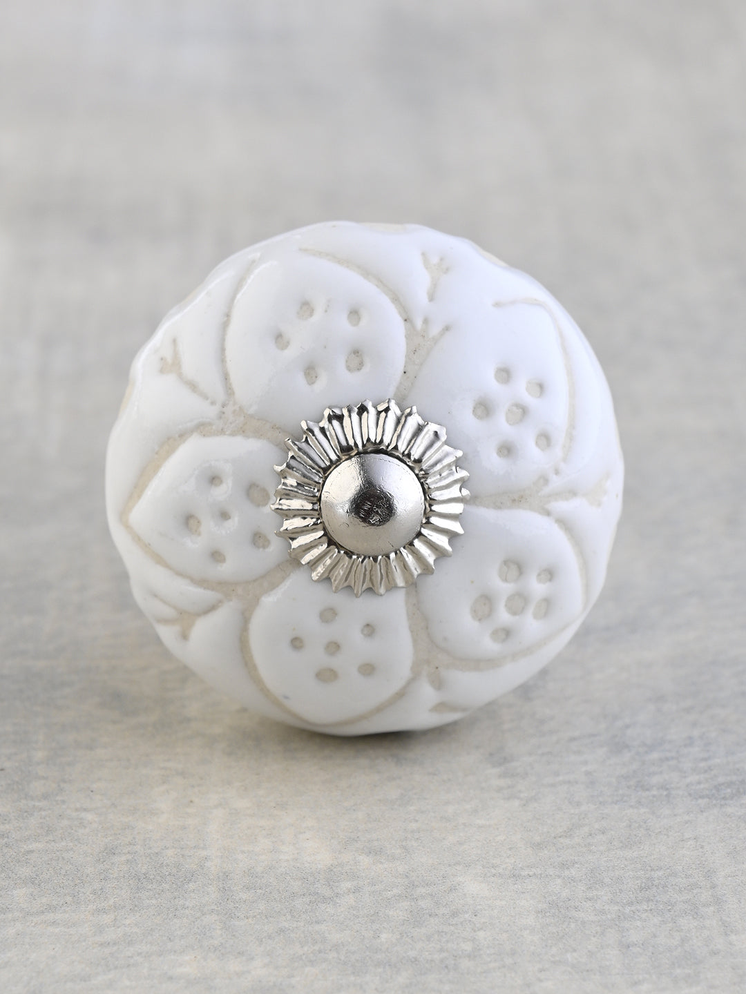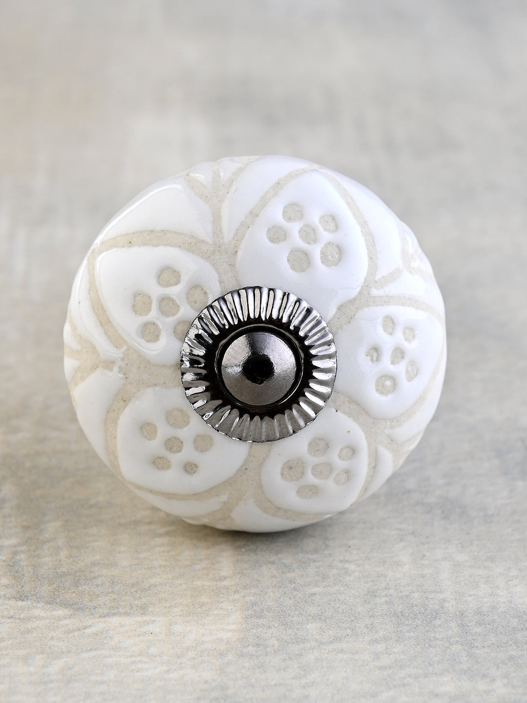 White Ceramic Designer Embossed Dresser Cabinet Knob