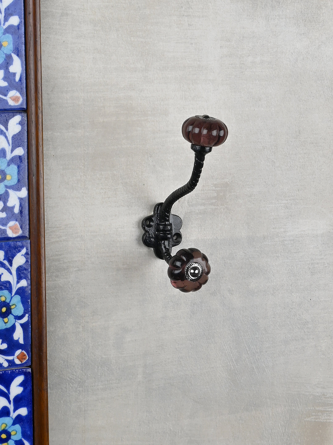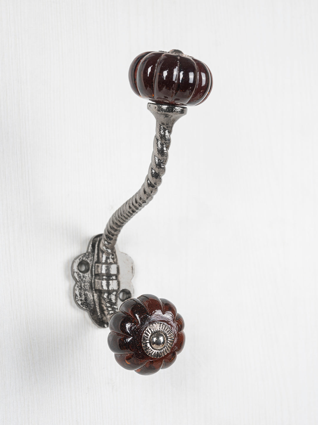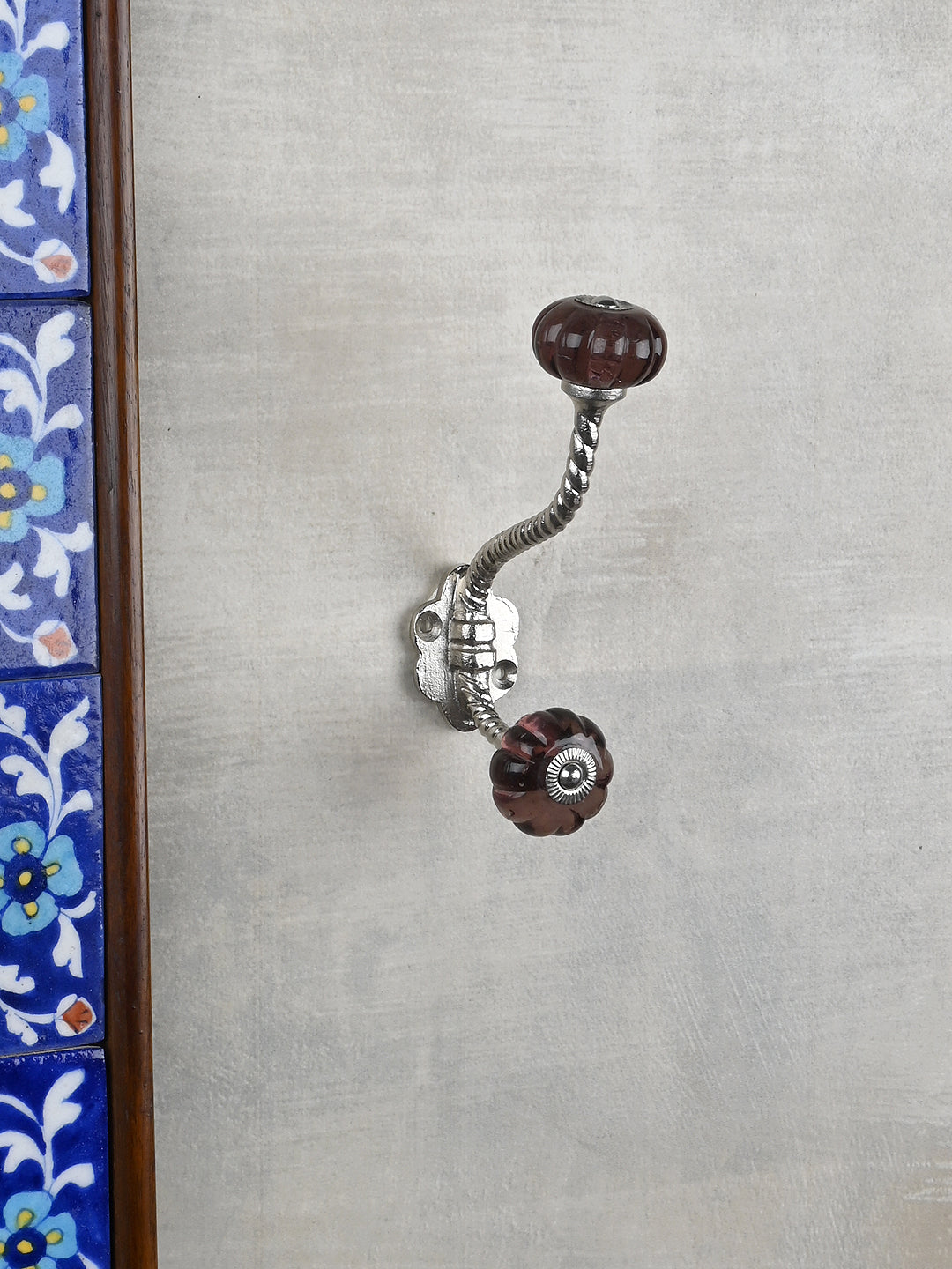 Decorative Metal Wall Hanger With Solid Dark Brown Glass Knob