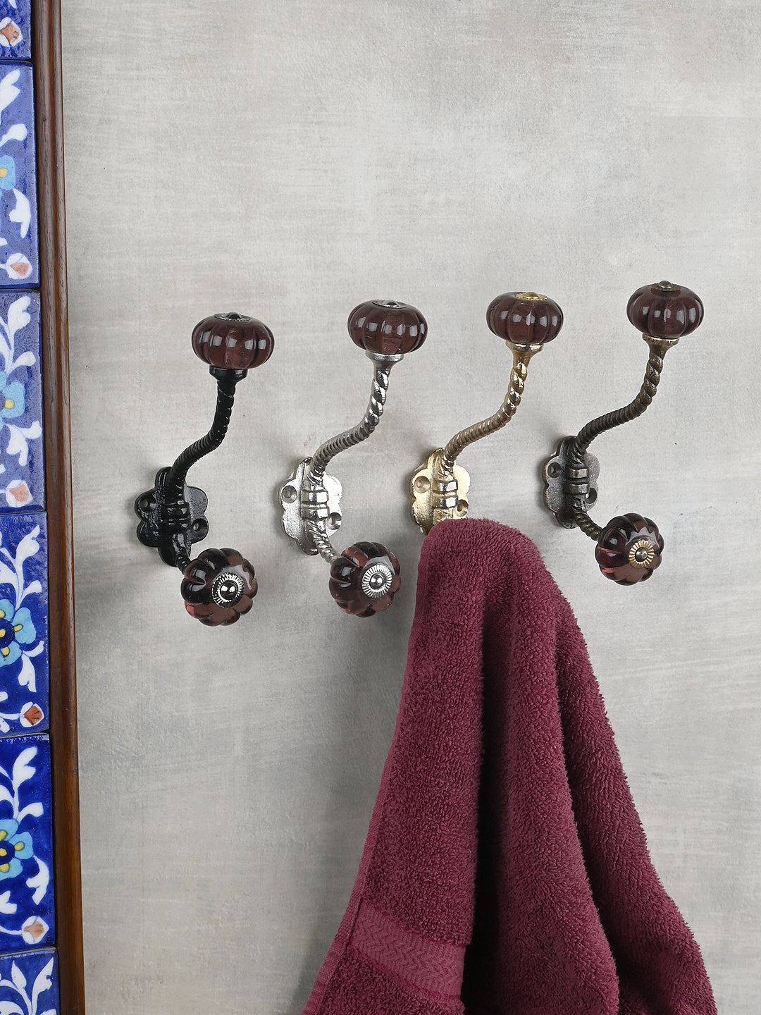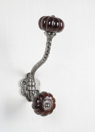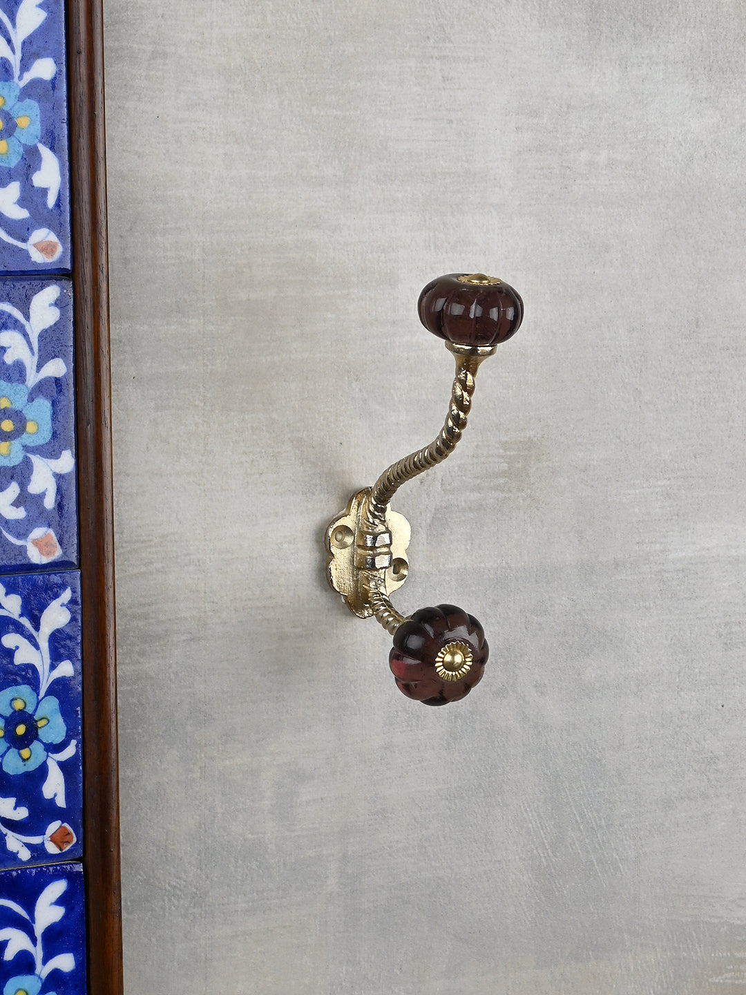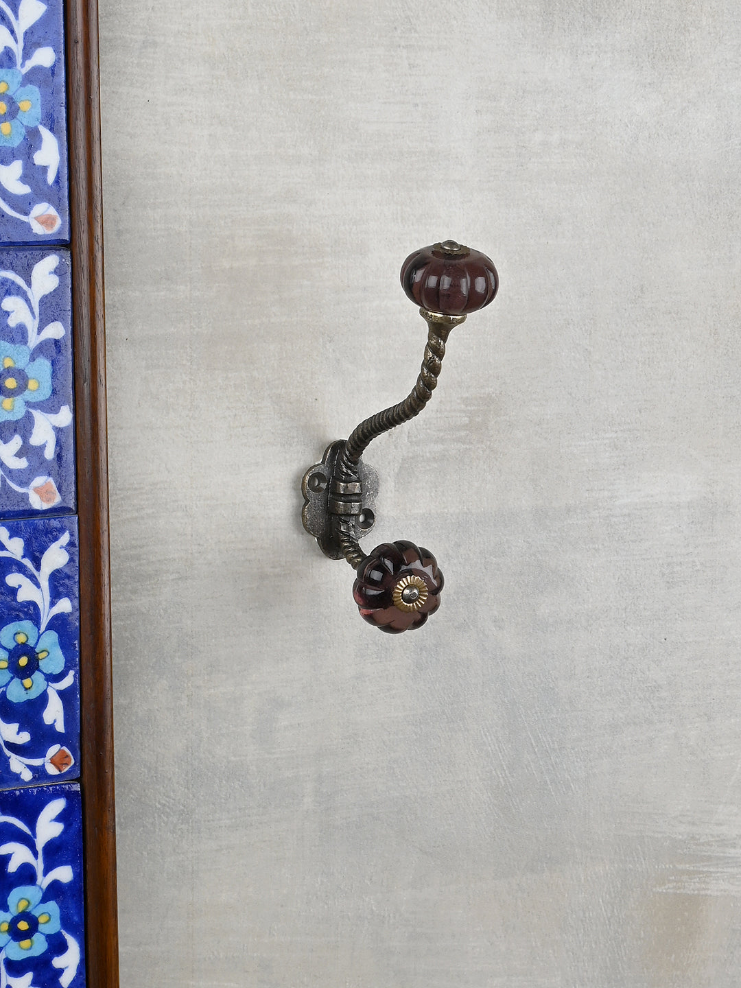 Decorative Metal Wall Hanger With Solid Dark Brown Glass Knob