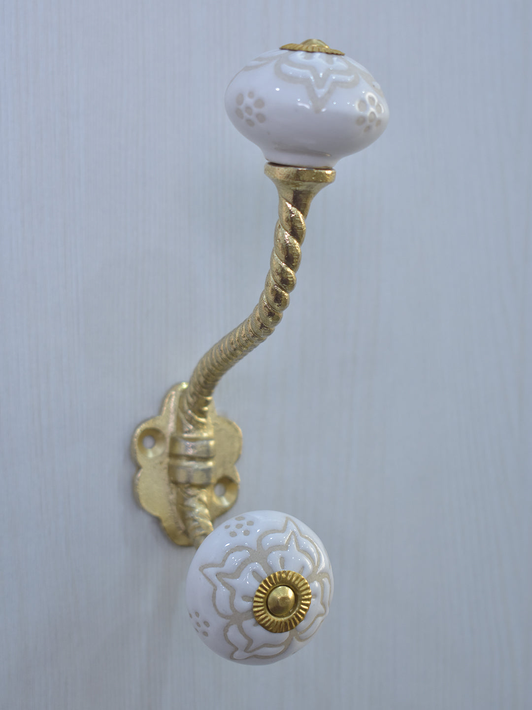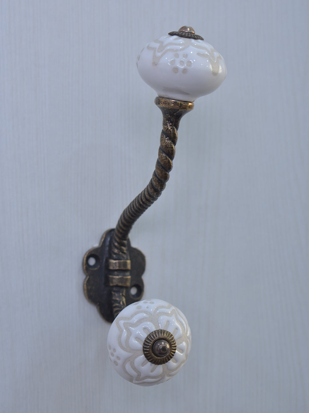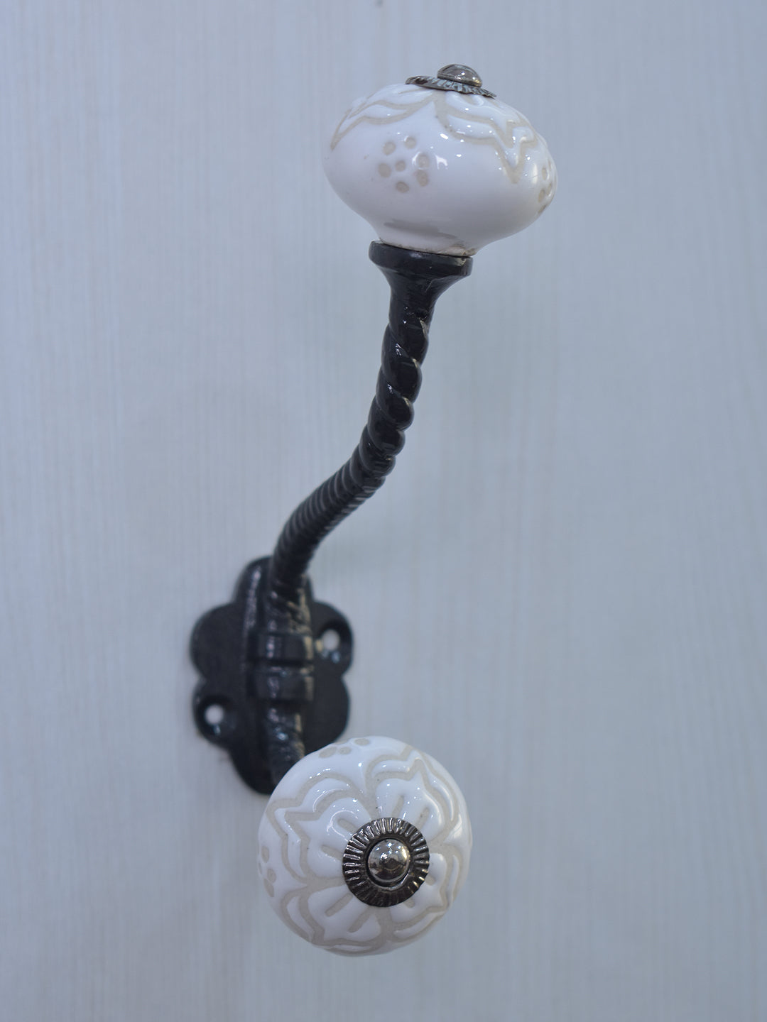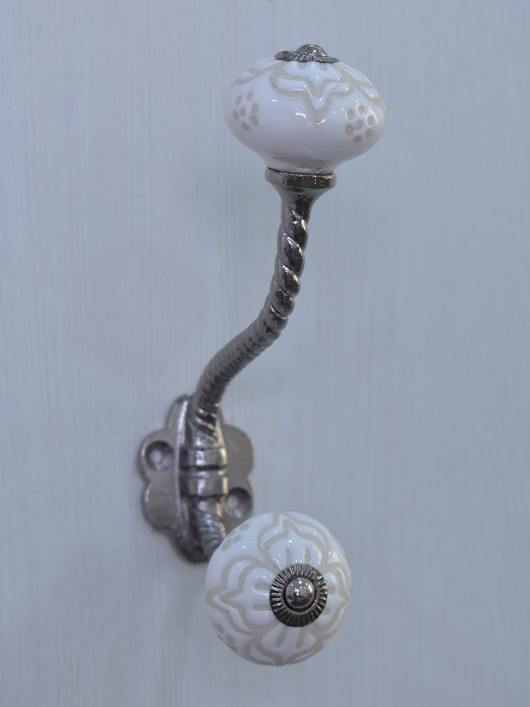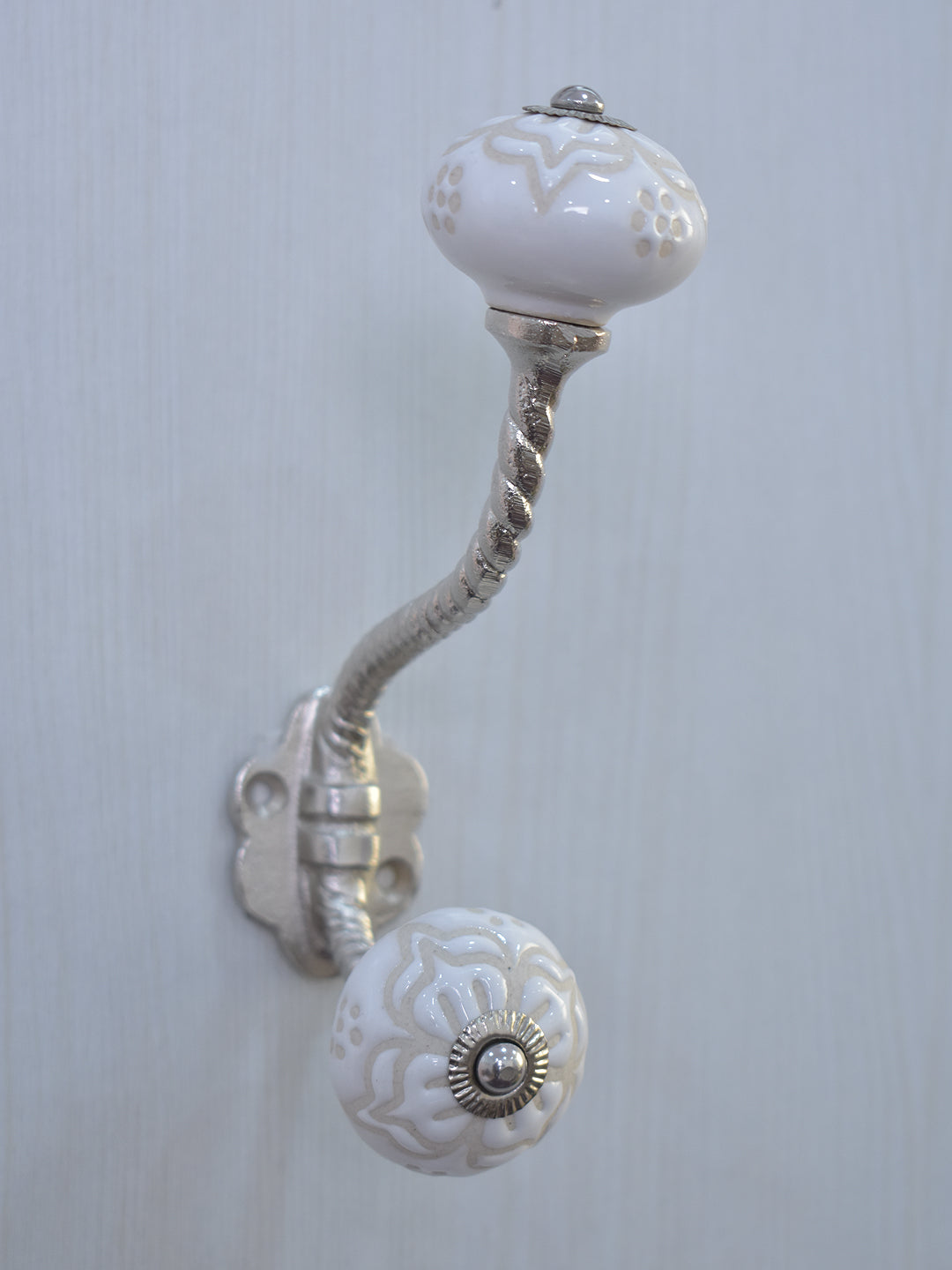 Emmbossed White Ceramic Cabinet Knob With Metal Wall Hanger