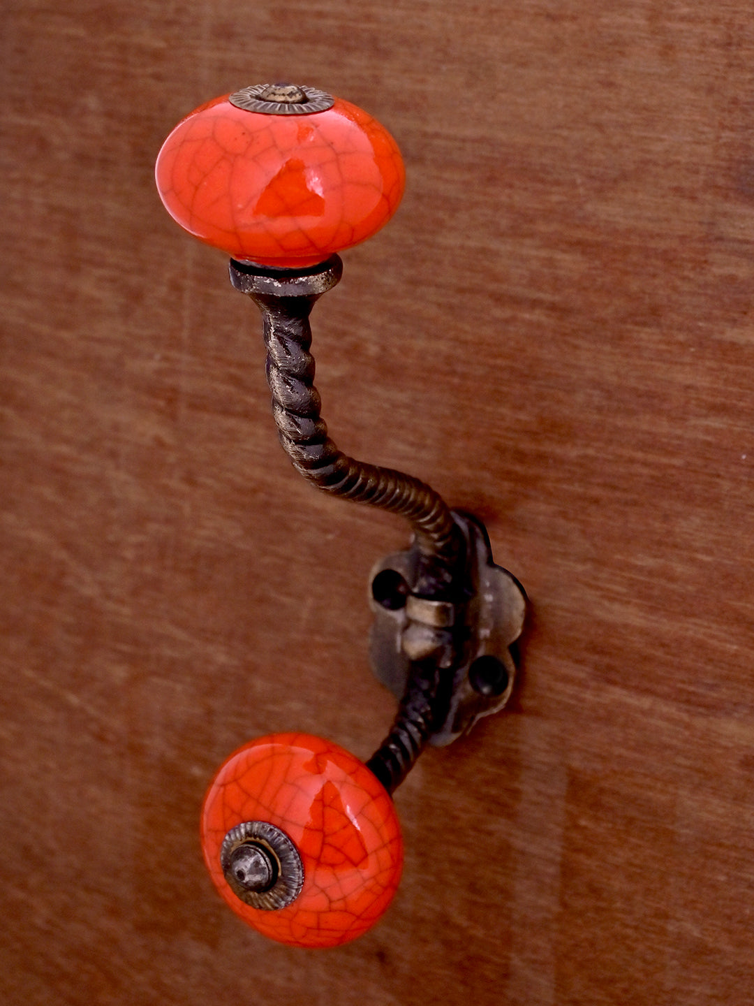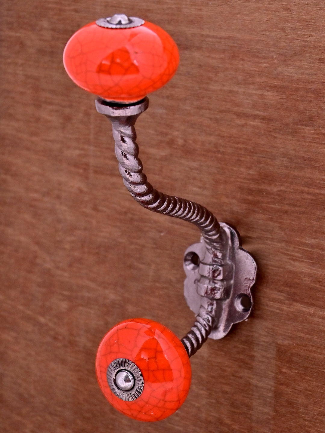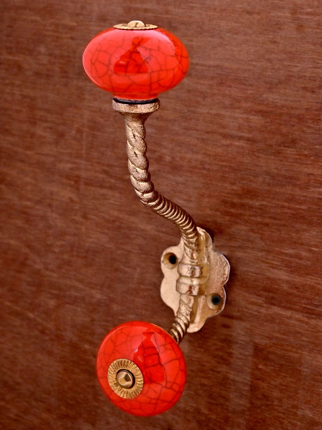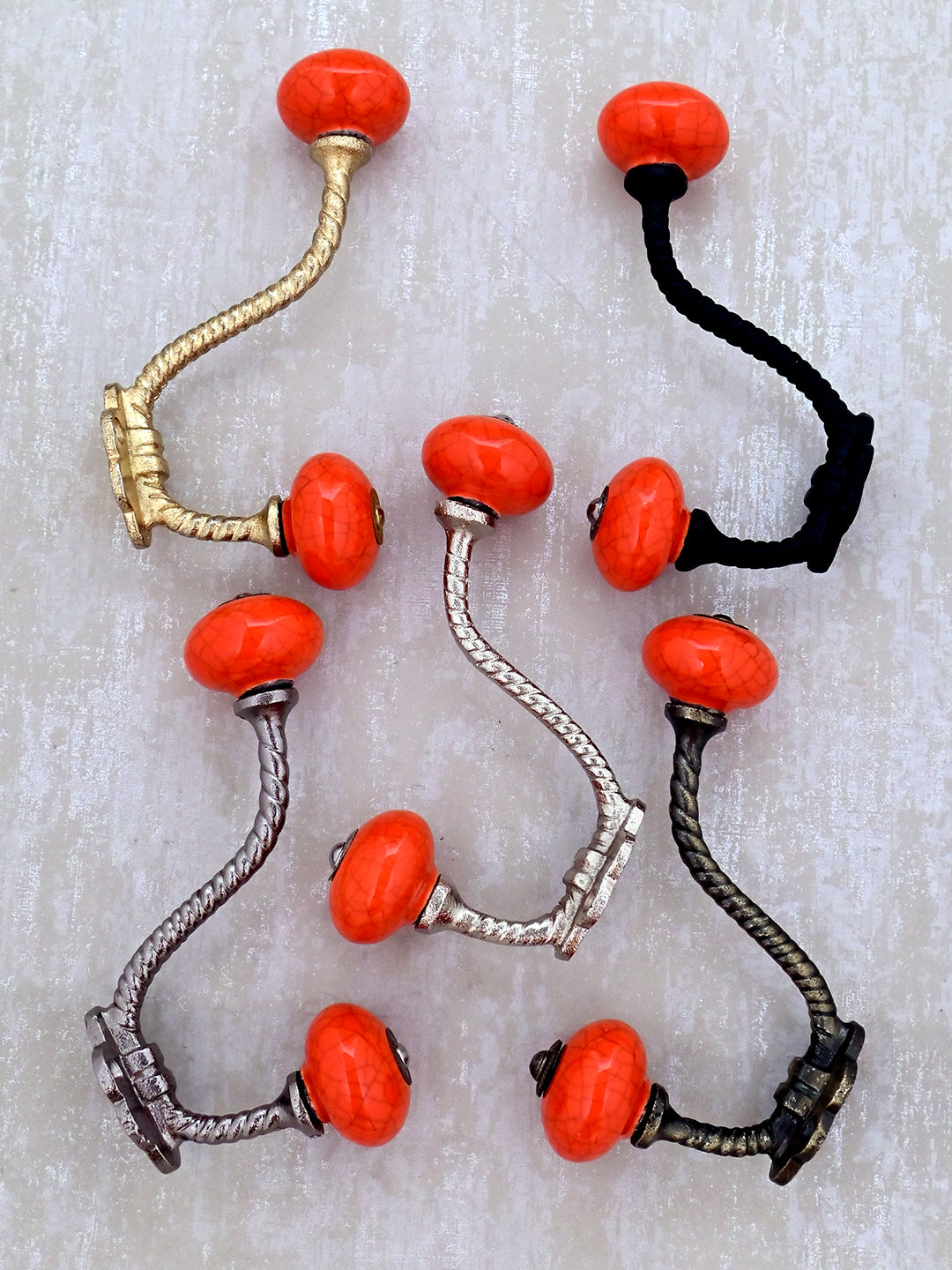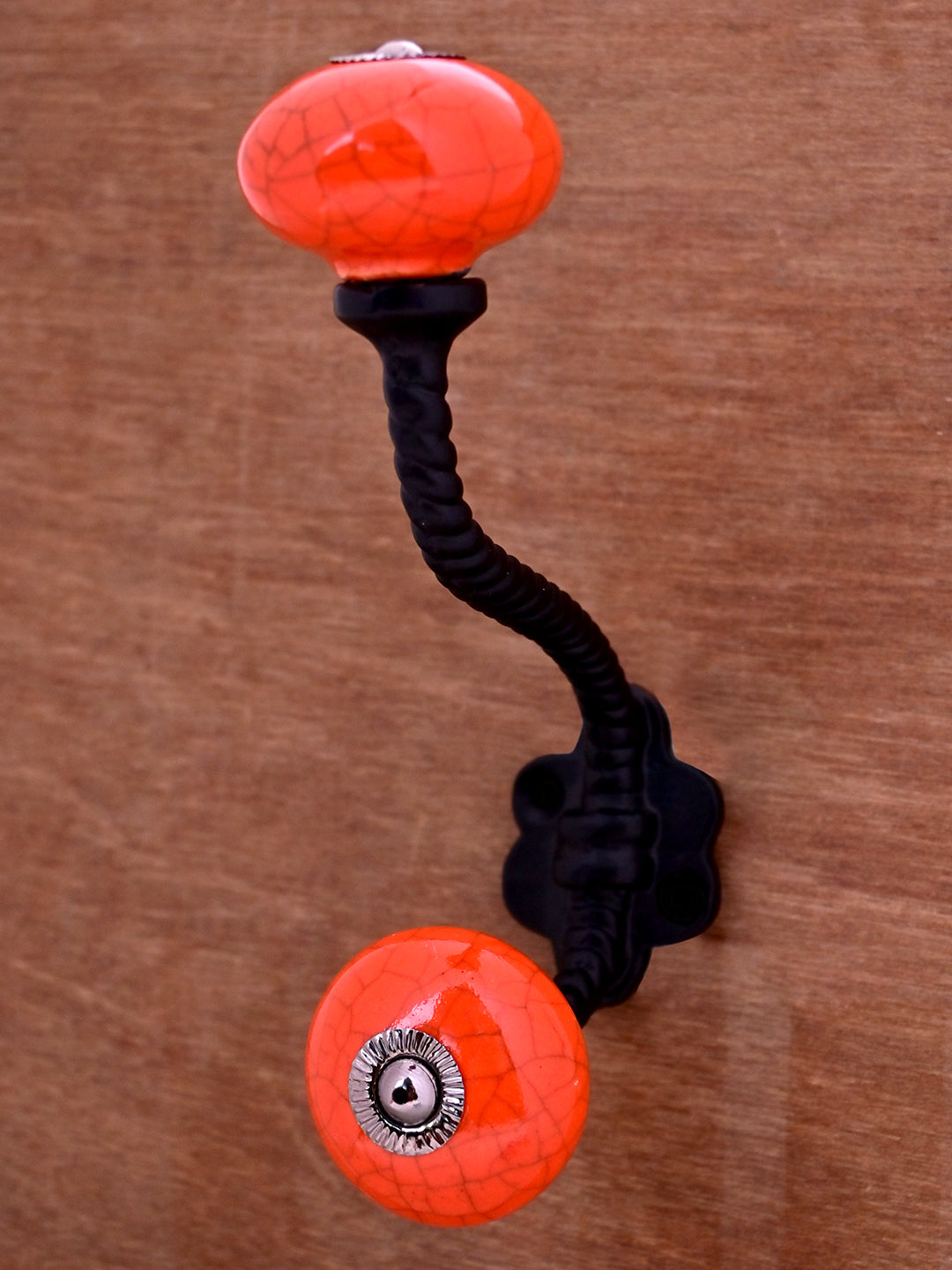 Red Color Cracked Ceramic Knob with Metal Wall Hook
