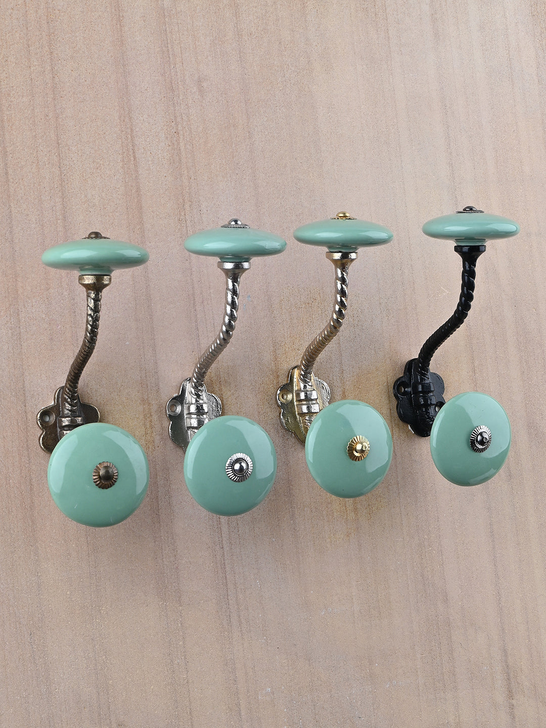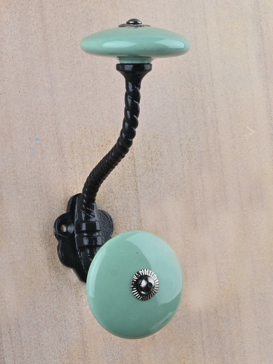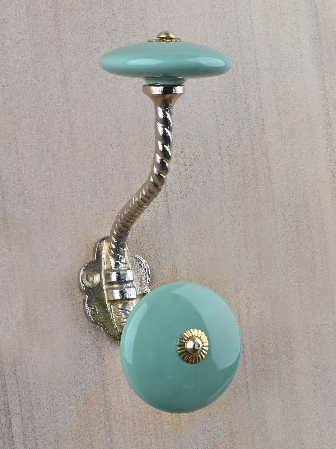Solid Teal Ceramic Knob With Metal Wall Hanger