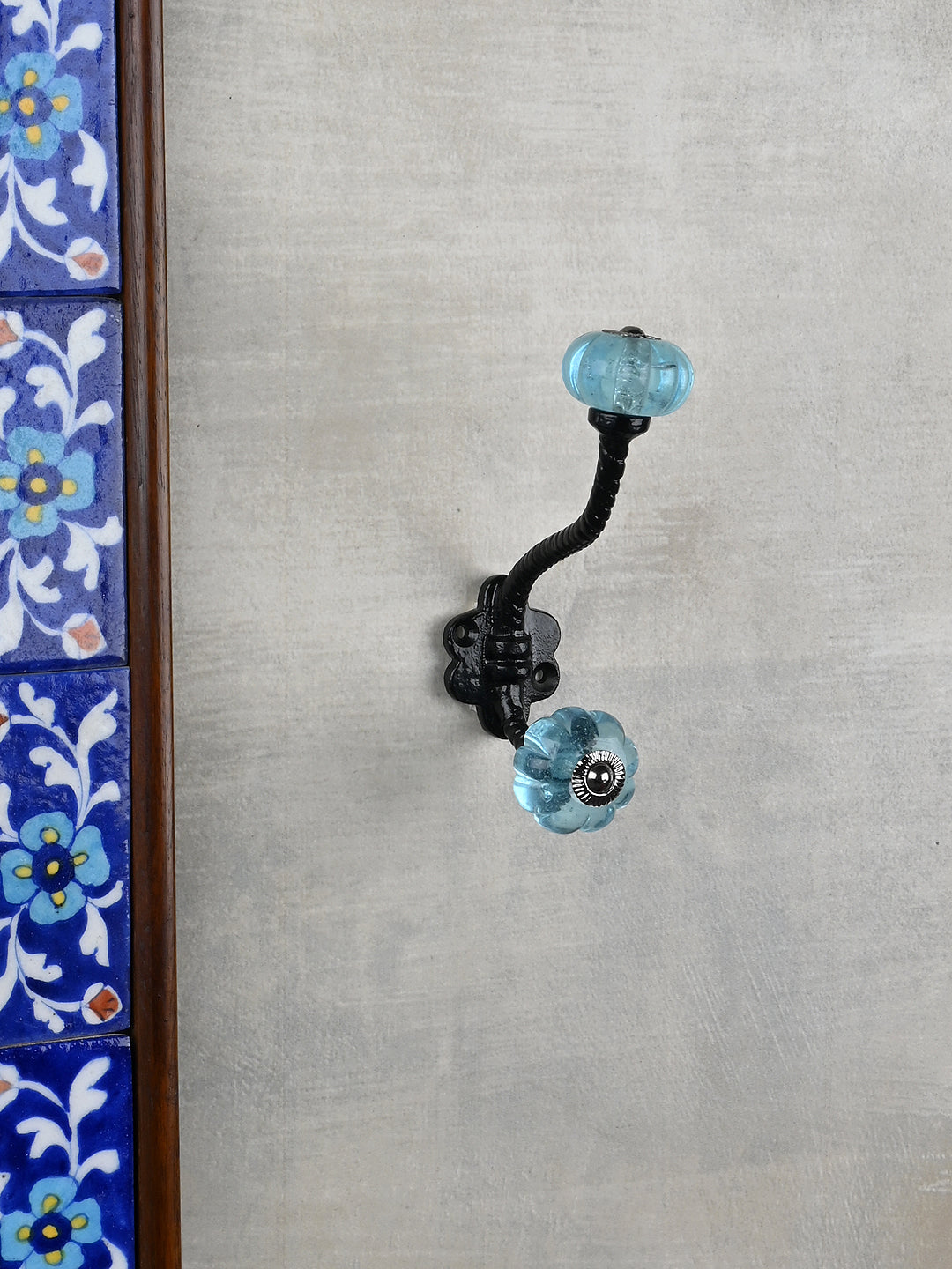 Unique Metal Wall Hanger With Turquoise Glass Knob