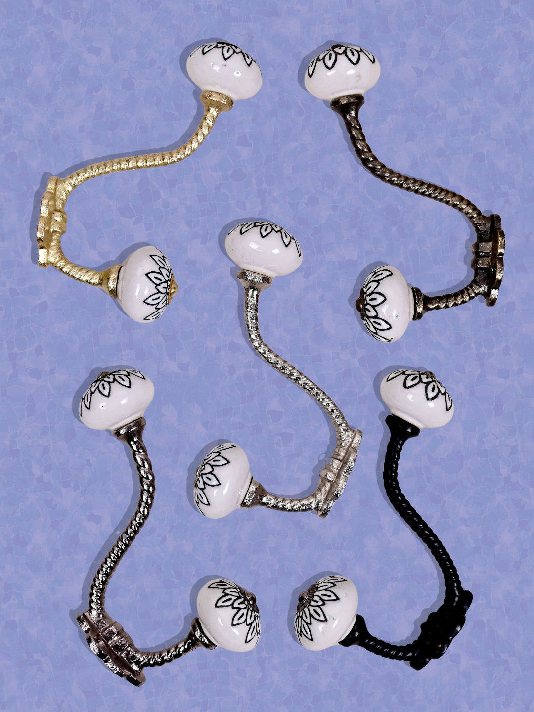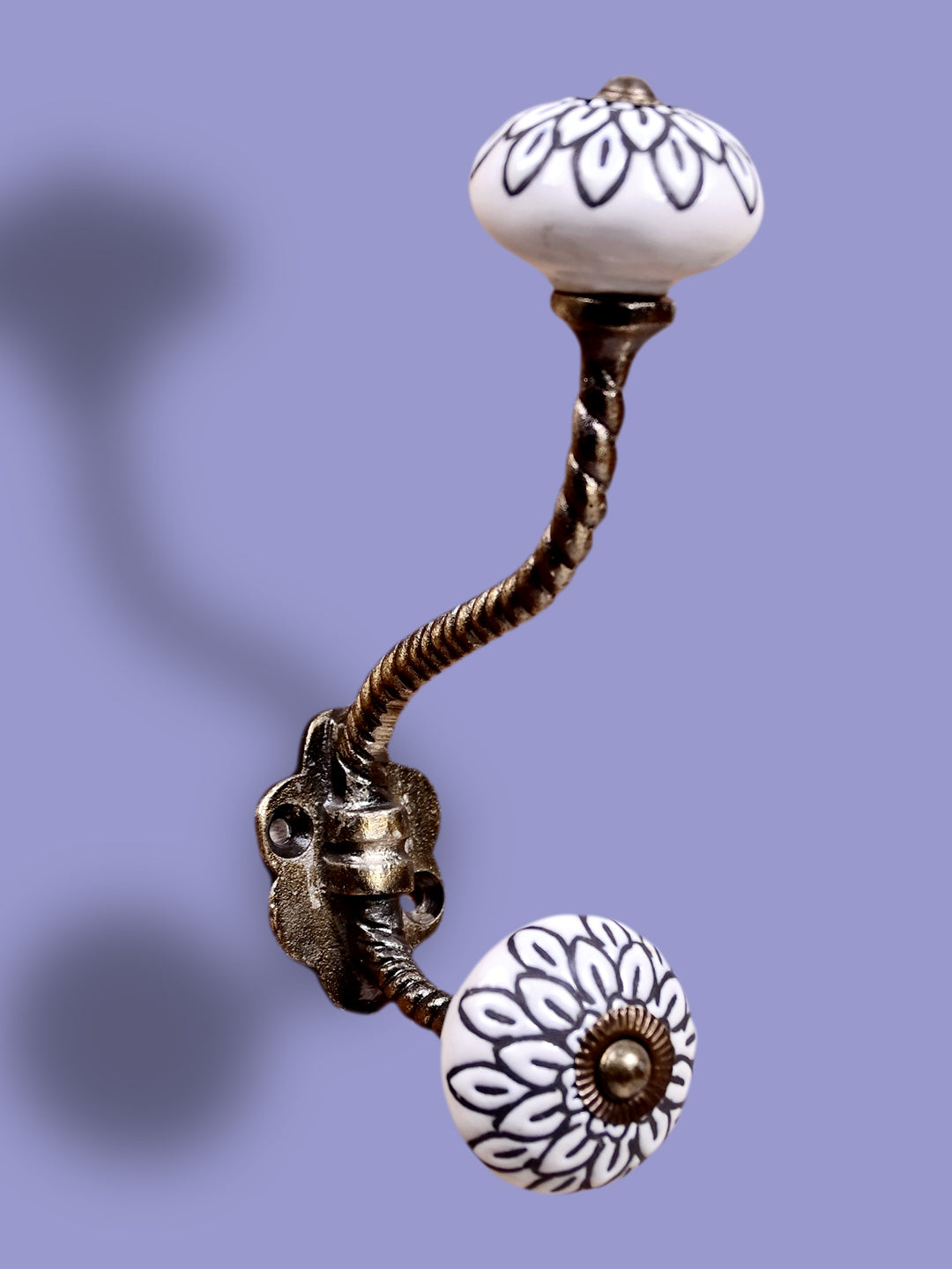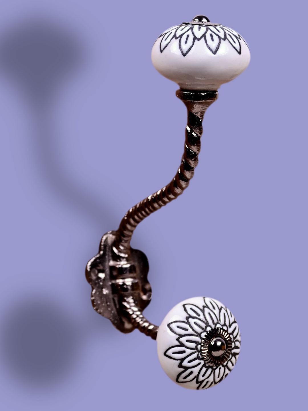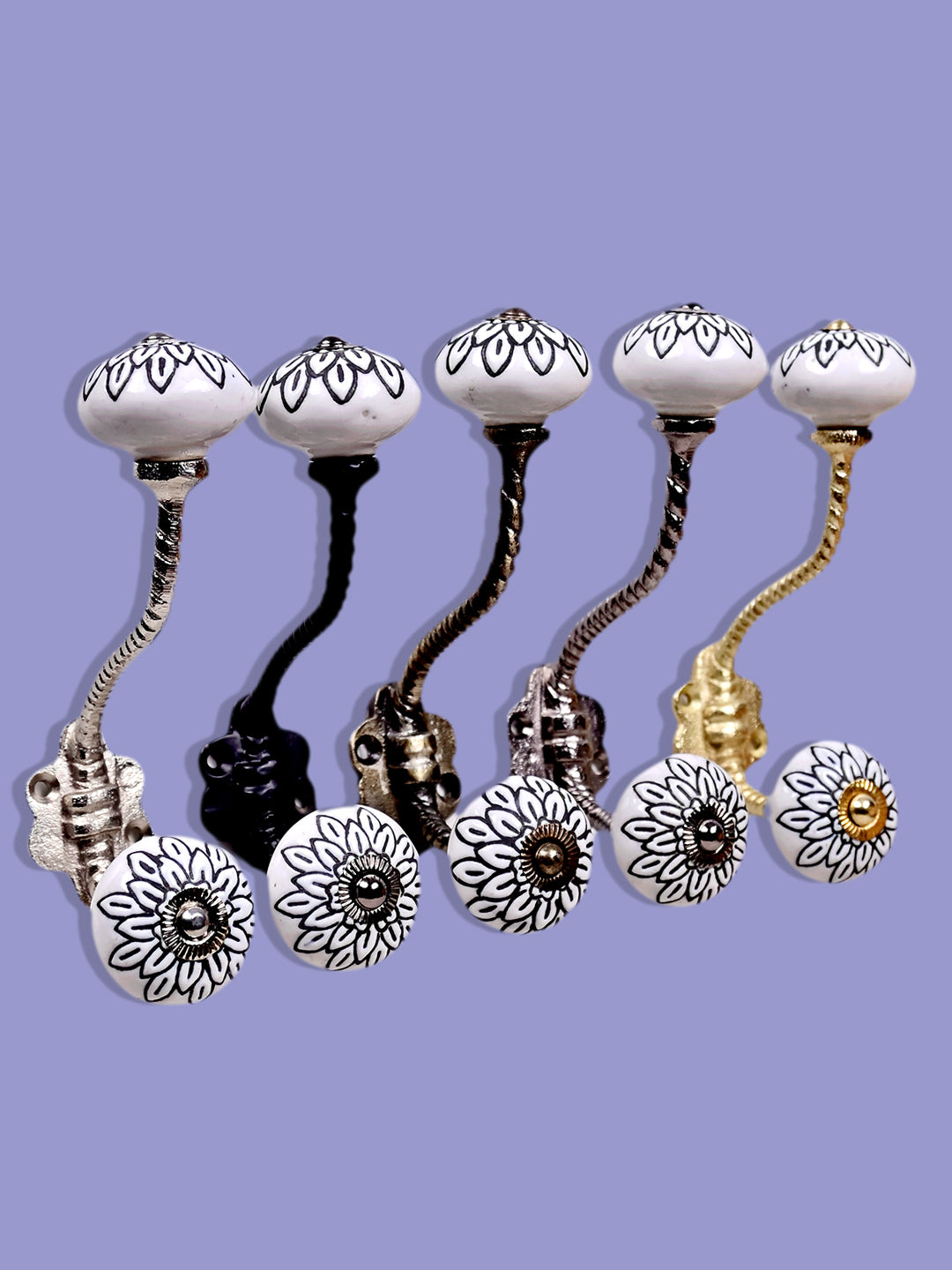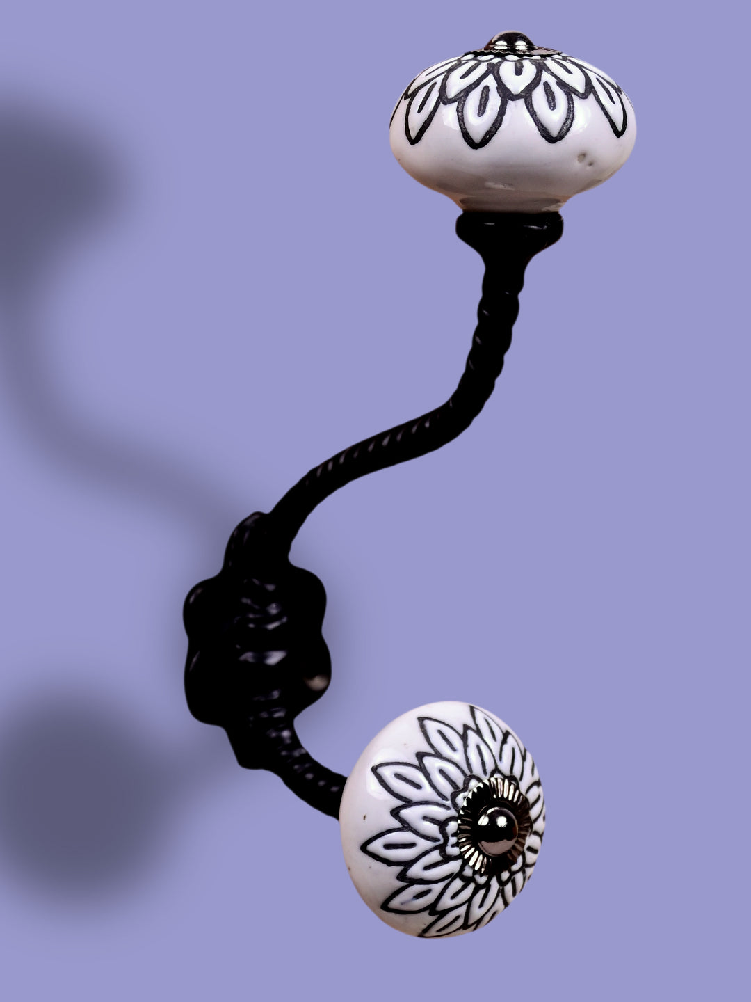 White Ceramic Knob Black Multi-Floral Layer With Metal Wall Hanger