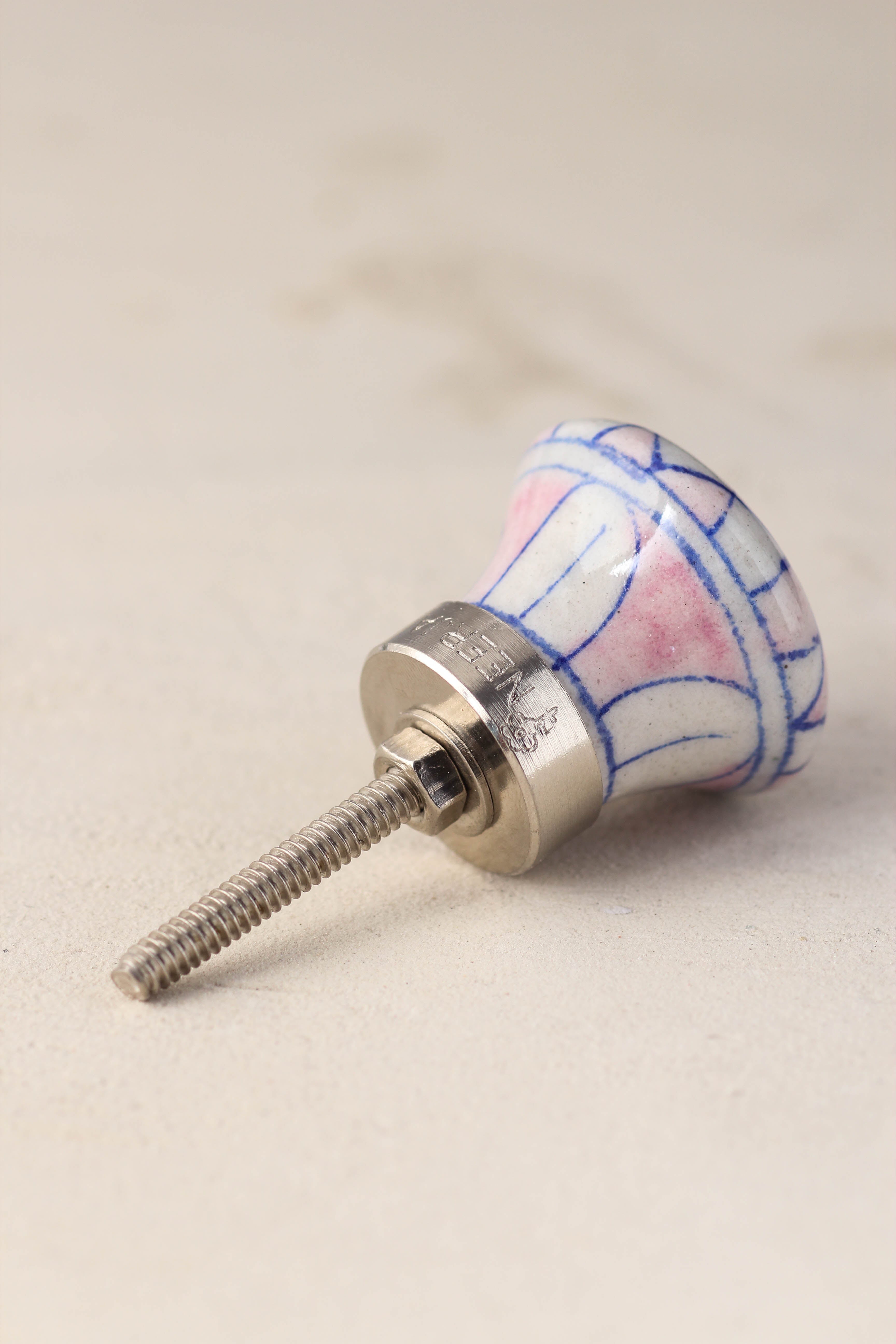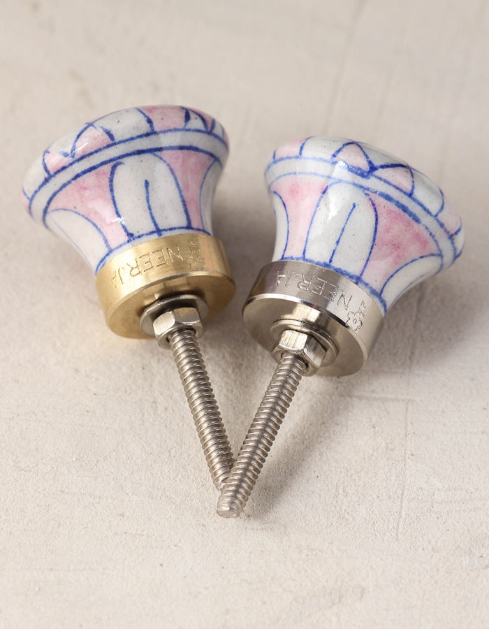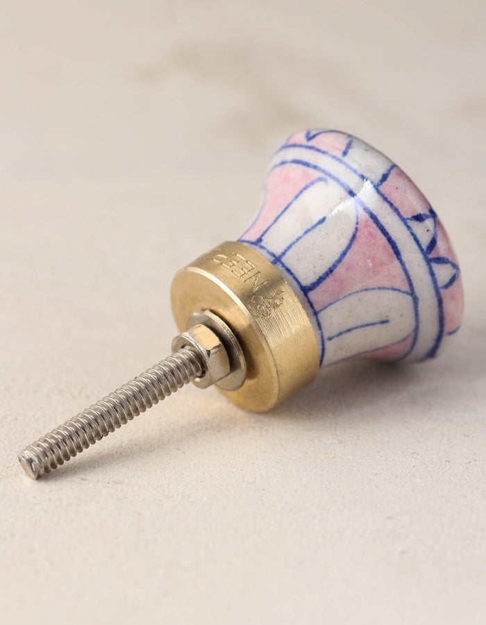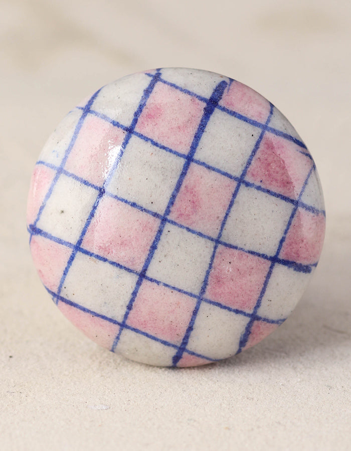 Pink And White Checkerboard Ceramic Blue Pottery Dresser Cabinet Knob