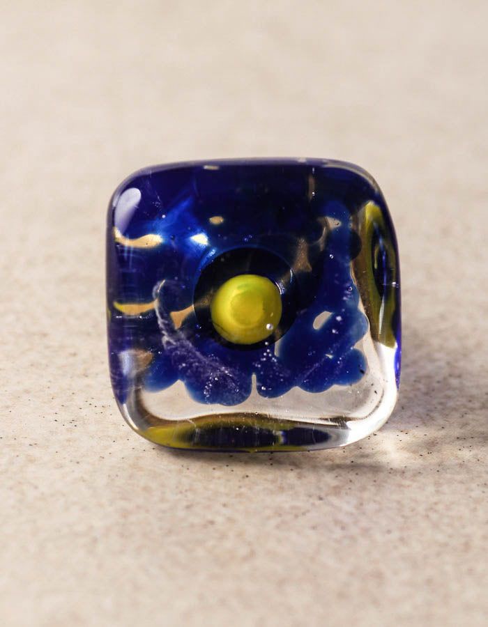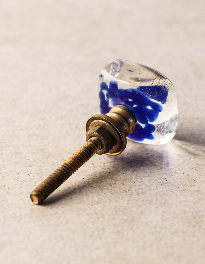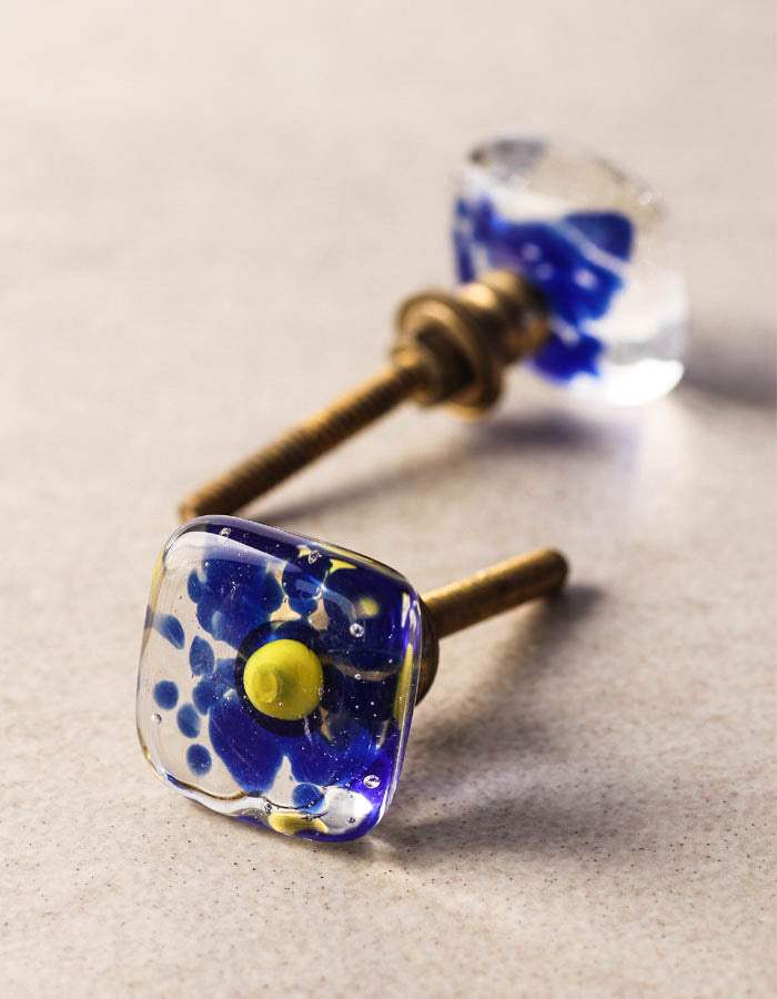 Clear Transparent Square Shaped Dresser Cabinet Knob With Blue Polka Dots