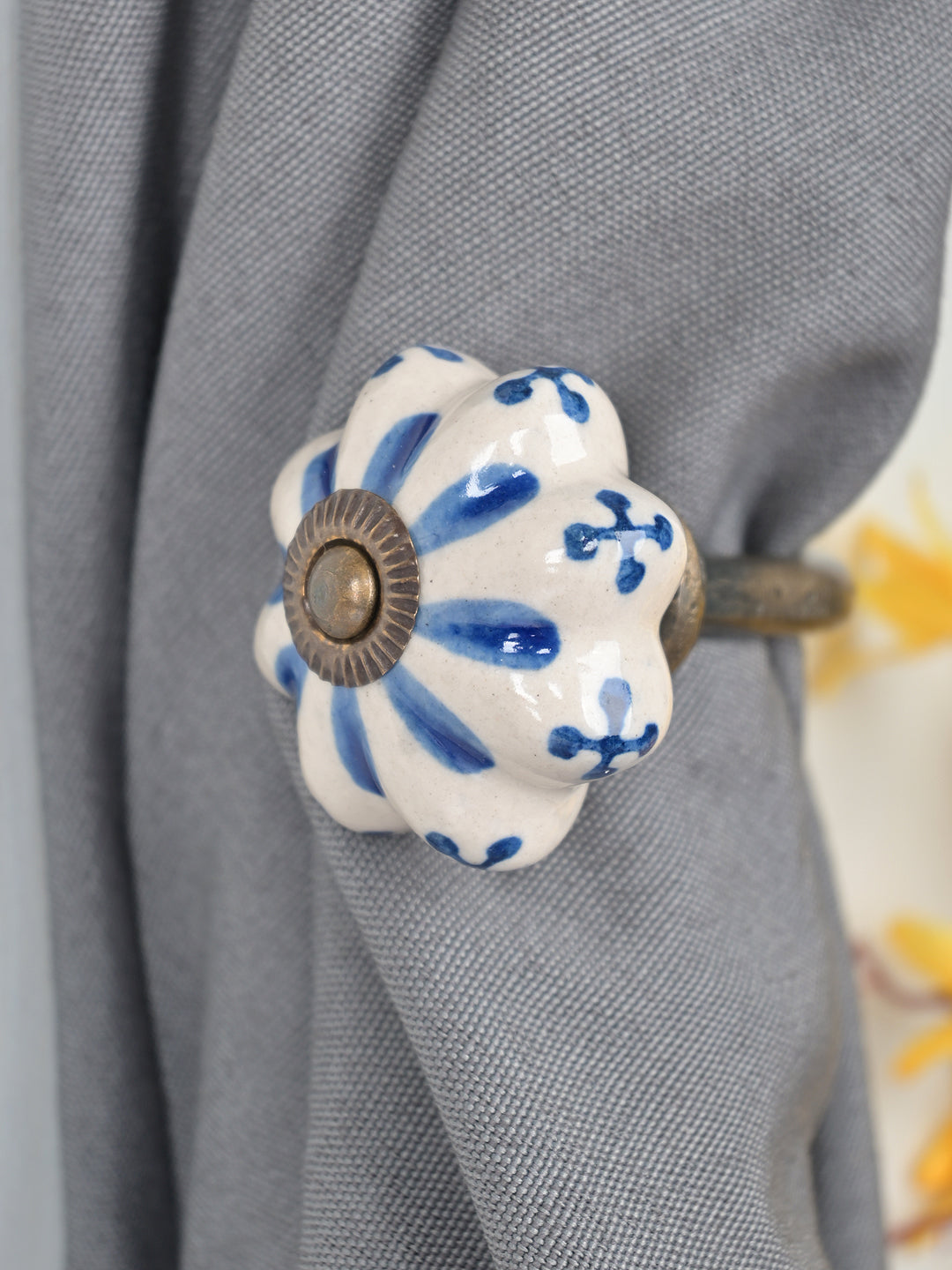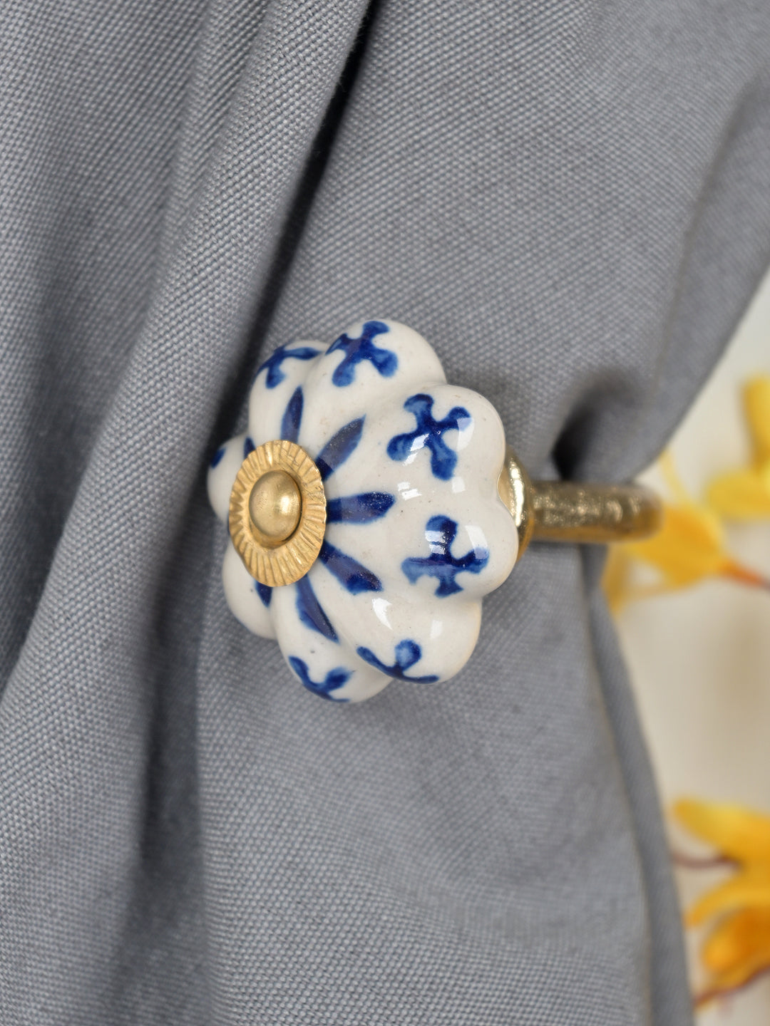Curtain Tie Backs Hook Decorative Wall Hook- Blue Design (Set of Two)