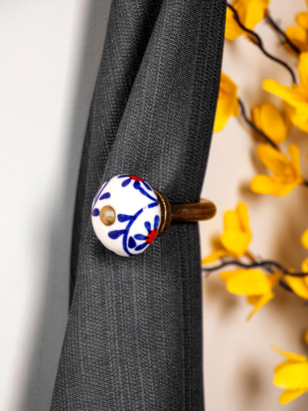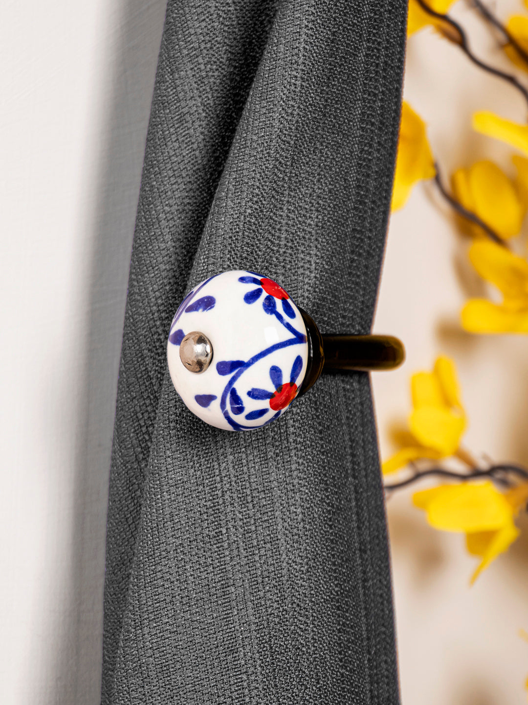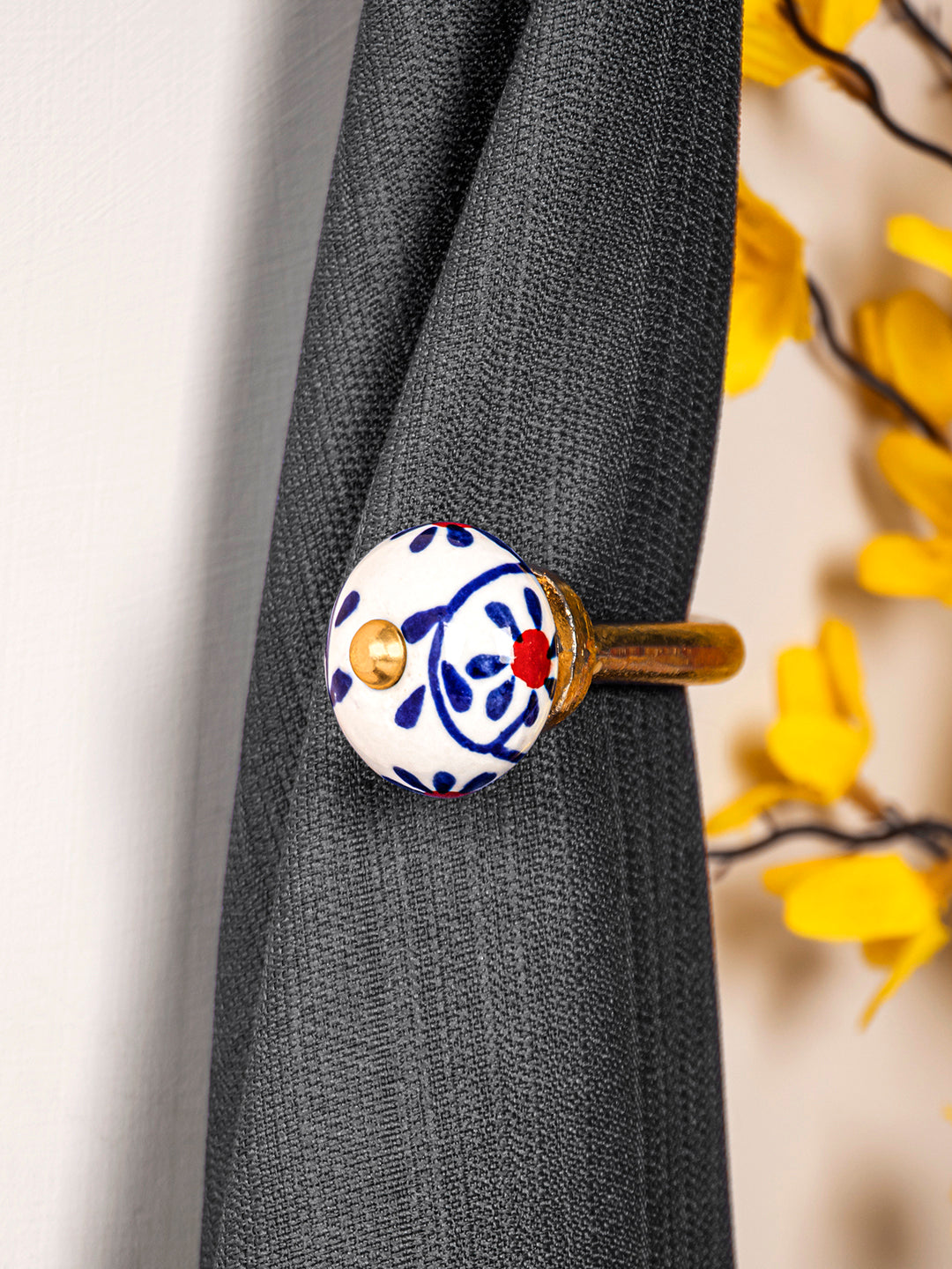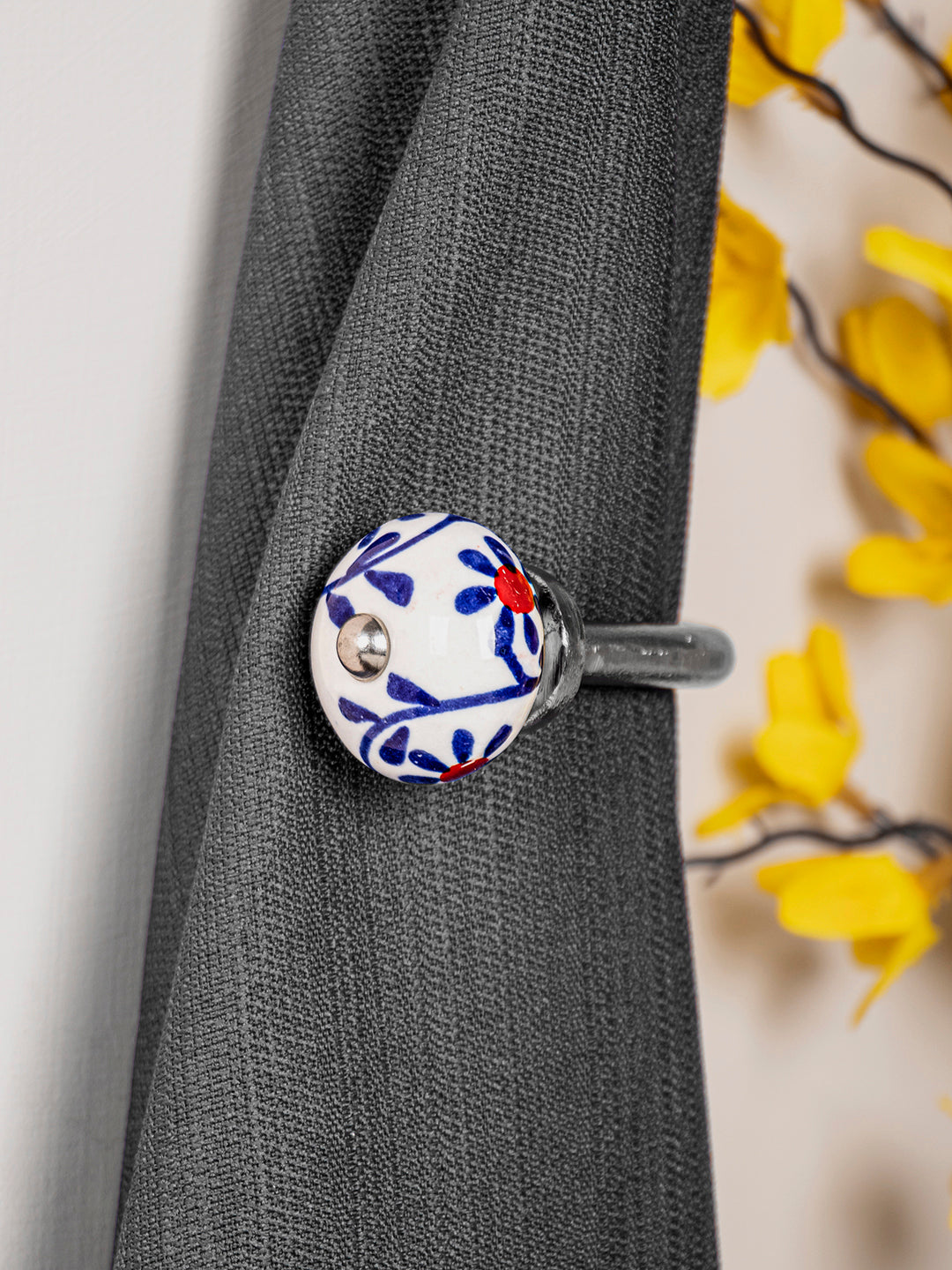 Curtain Tie Backs Hook Decorative Wall Hook- Blue Design (Set of Two)