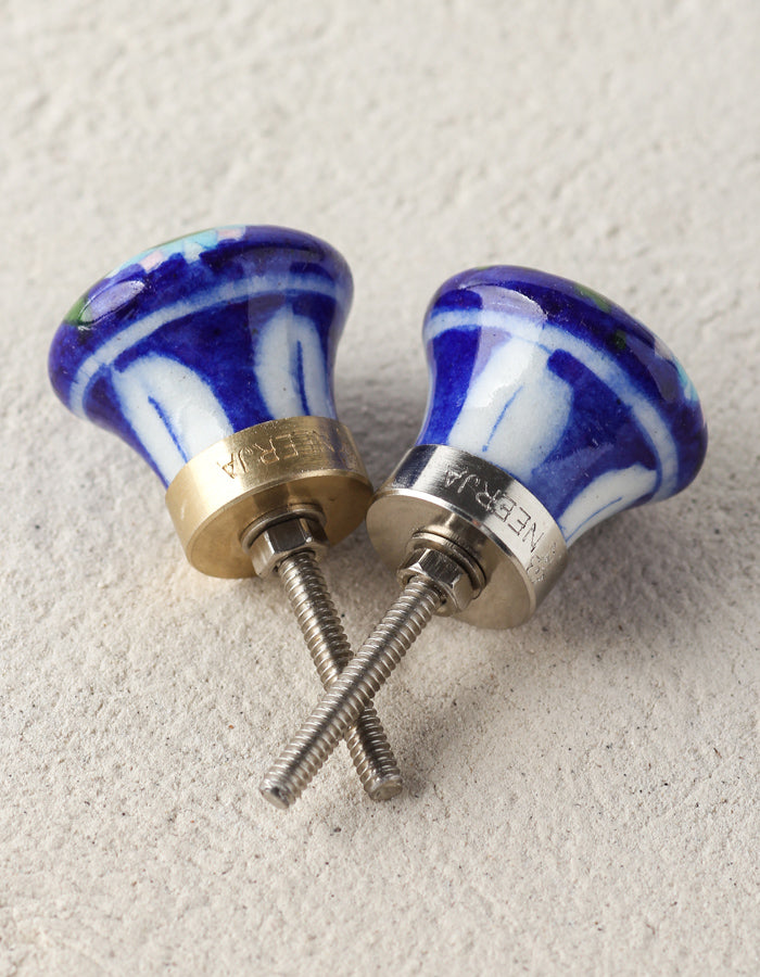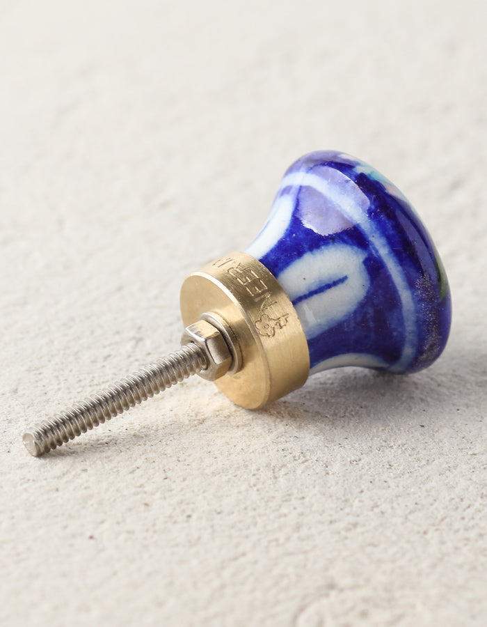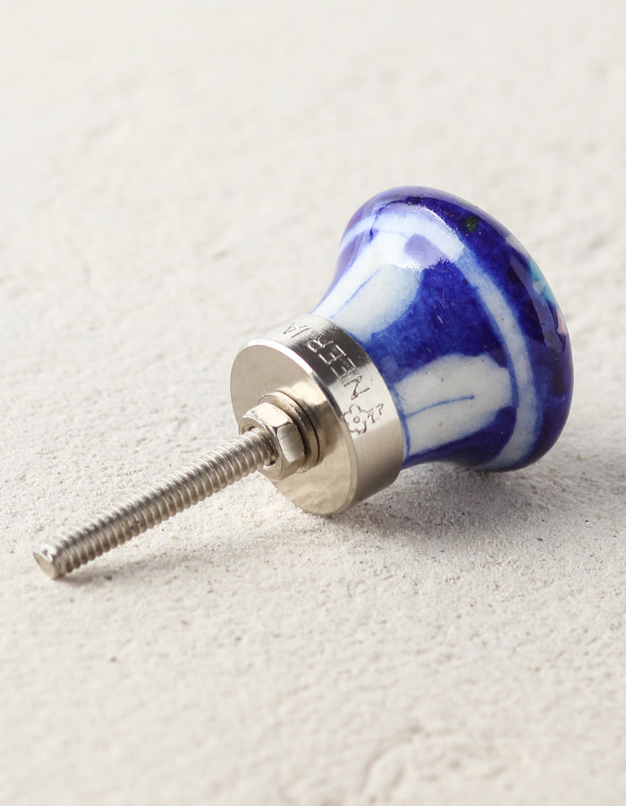 Handmade Blue Ceramic Kitchen Cabinet Knob With Turquoise Flower