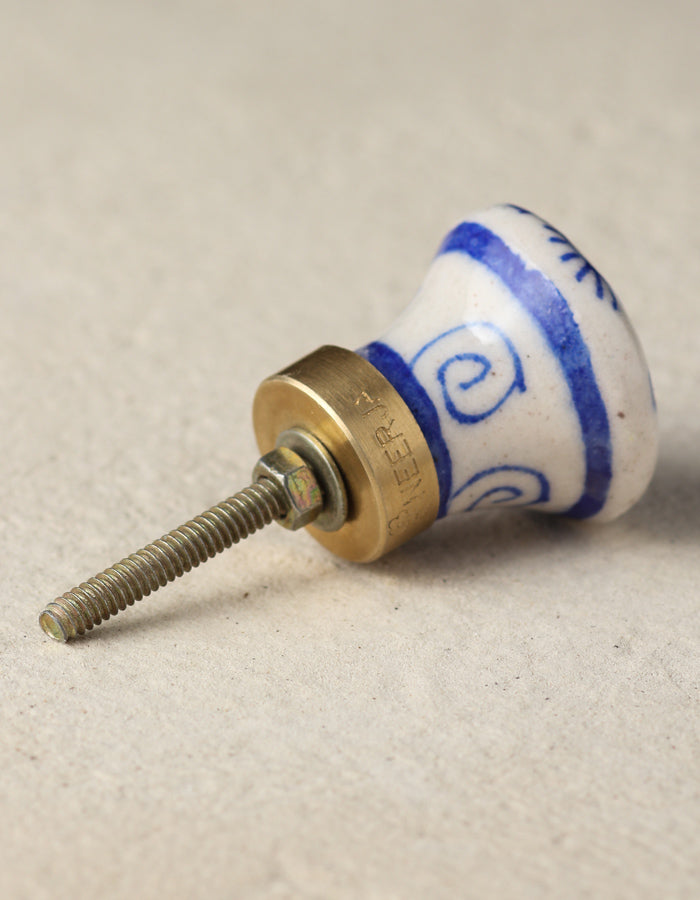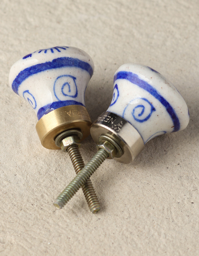 White Round Spiral S Ceramic Blue Pottery Dresser Cabinet Knob