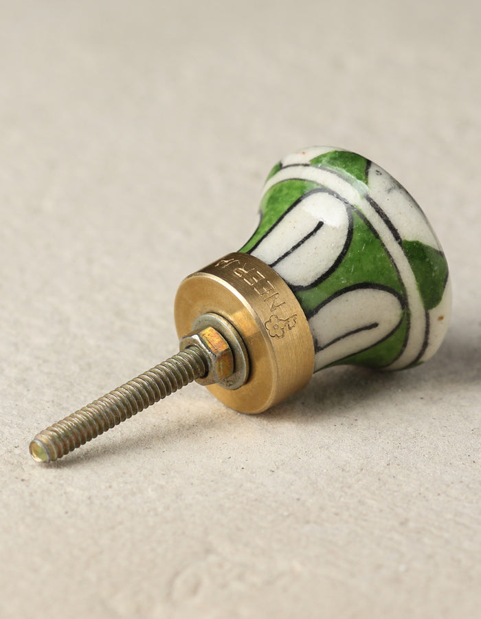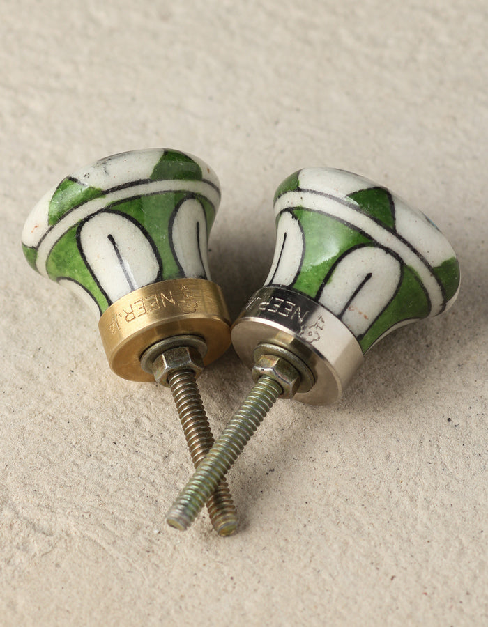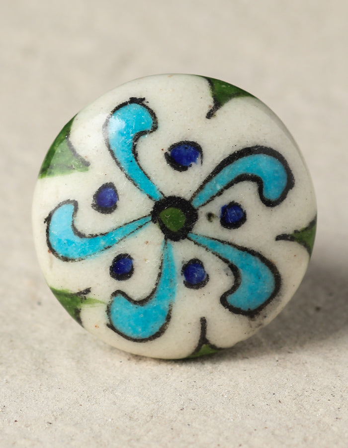 Well Designed White Ceramic Dresser Cabinet Knob With Turquoise And Blue Design