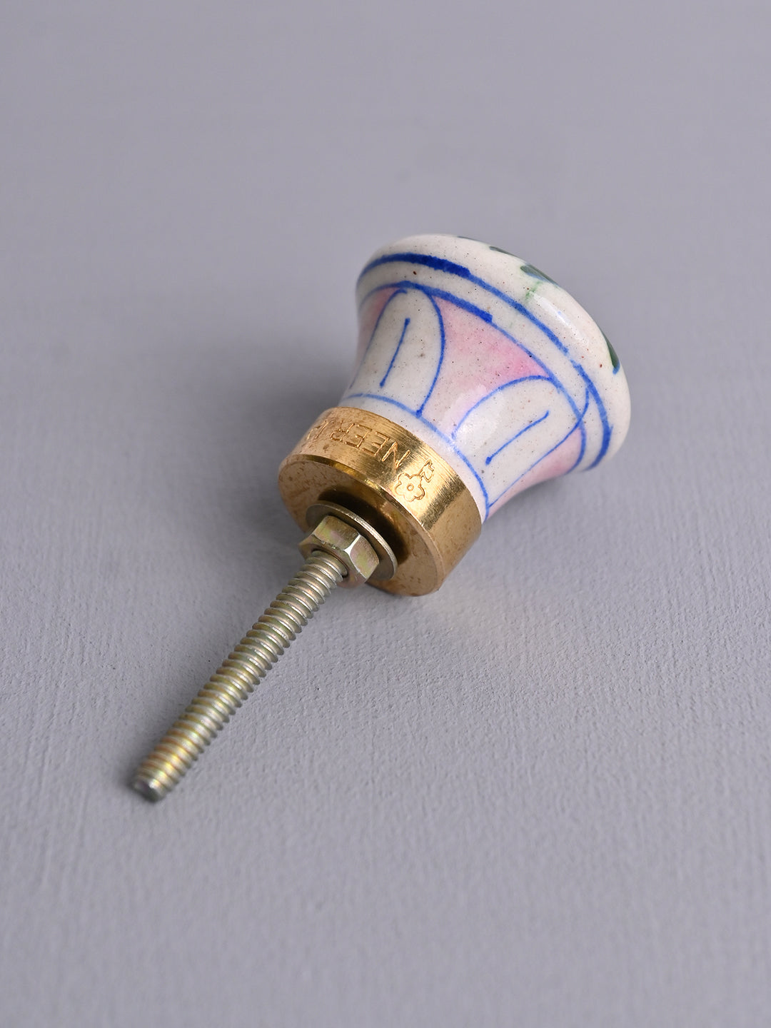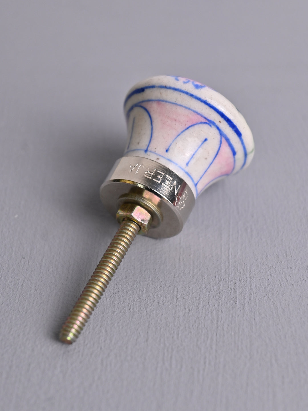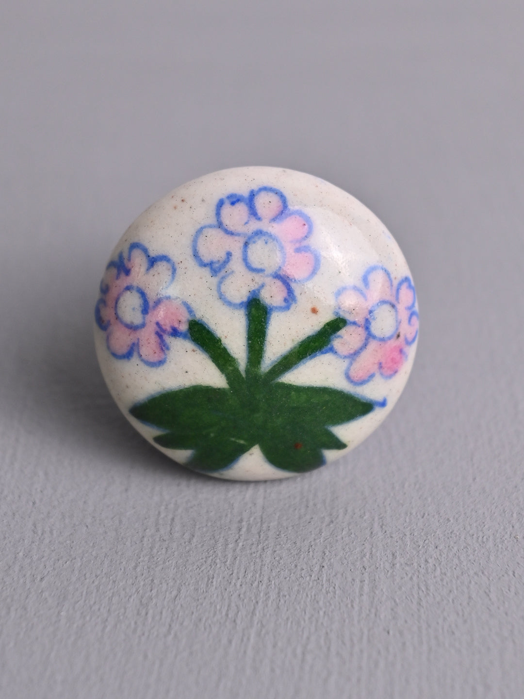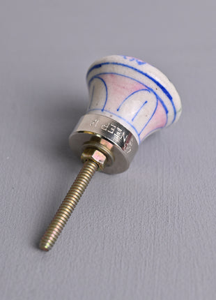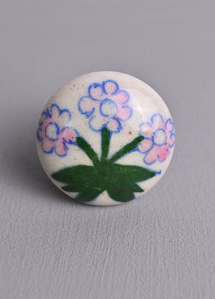 White Ceramic Blue Pottery Drawer Knob with Pink Paisley Flower