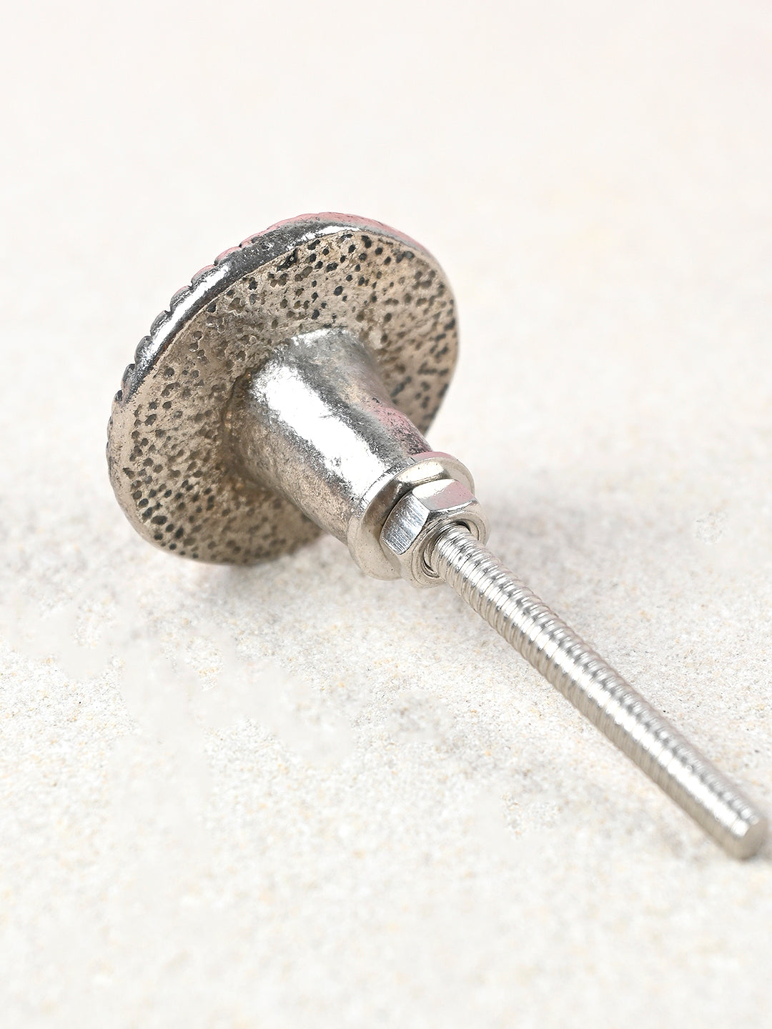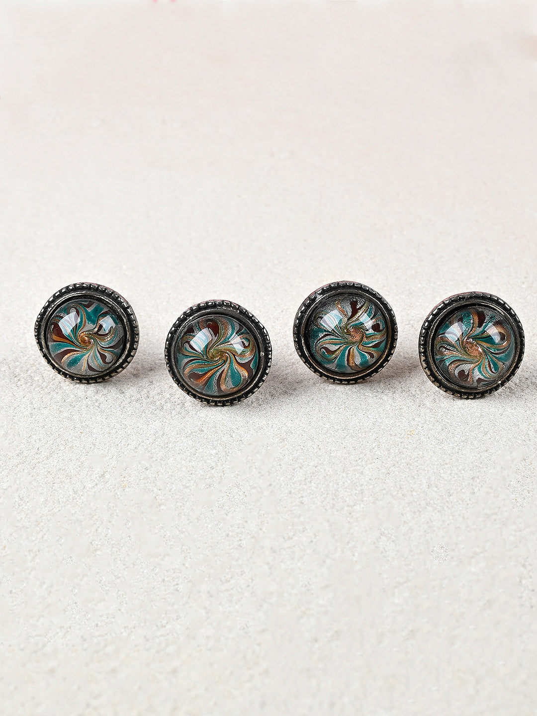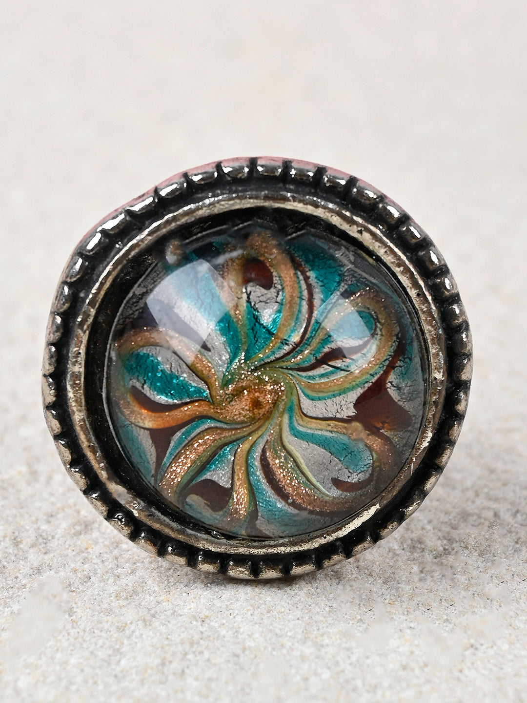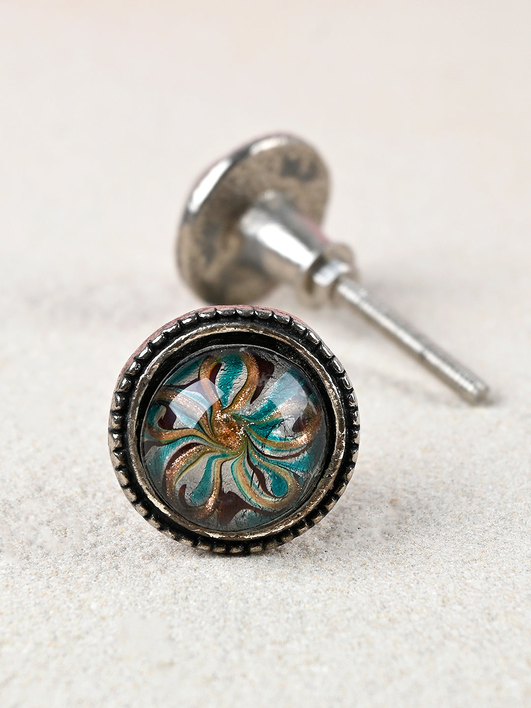 Golden, Turquoise and Dark Red Glass Knob on a Antique Silver Metal Base