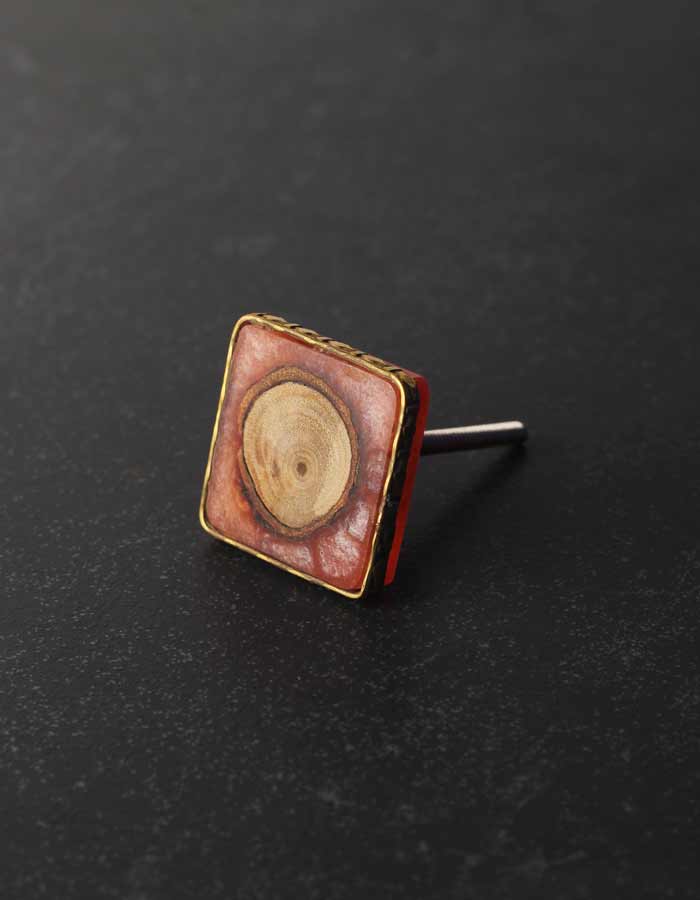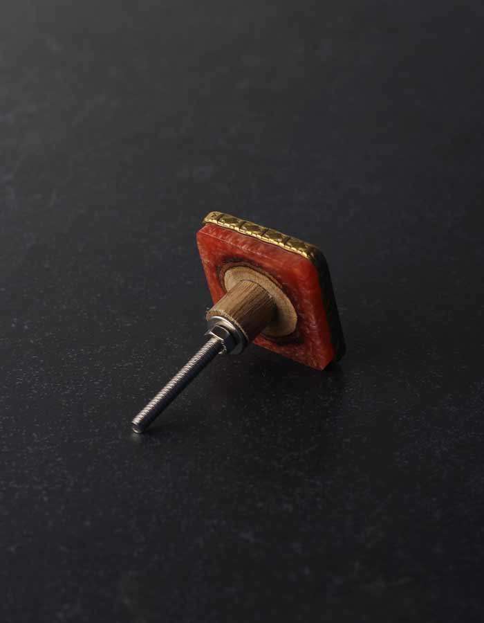 Designer Orange Resin With Brass Border Door Knob