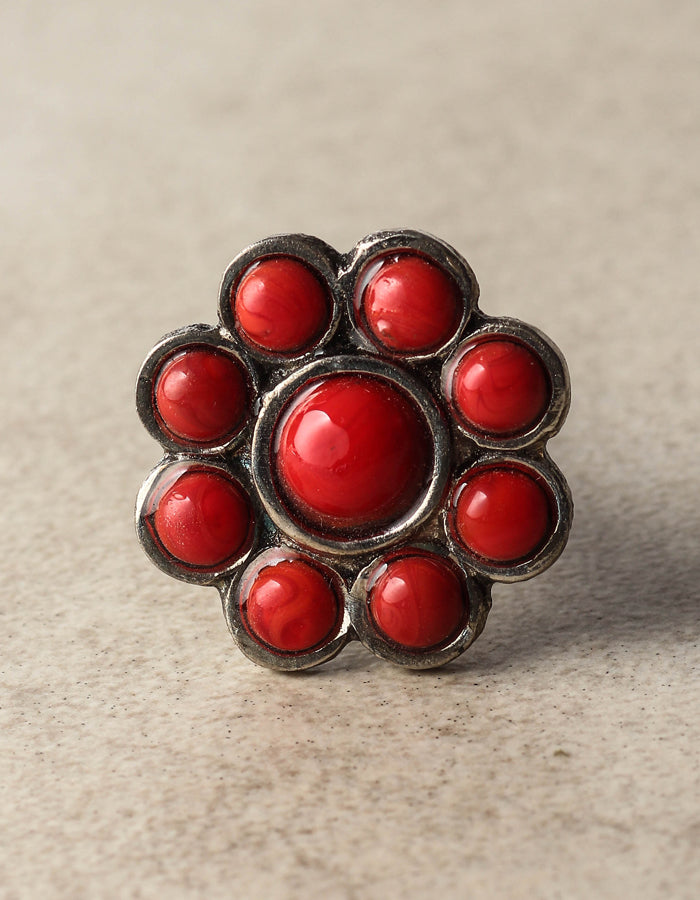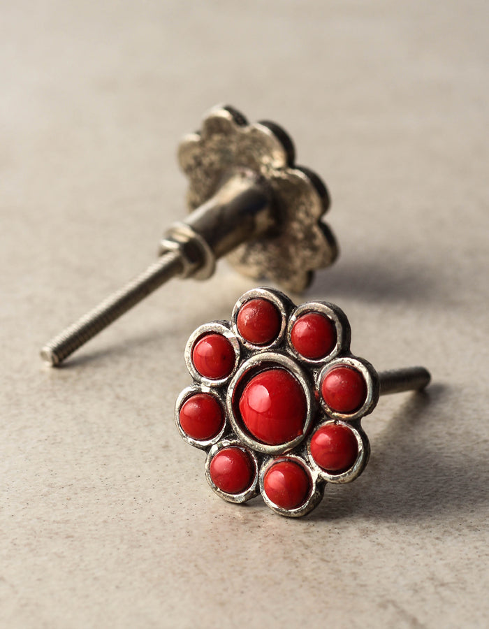 Nine Half Cut Red Beaded Dresser Cabinet Knob On Metal Base