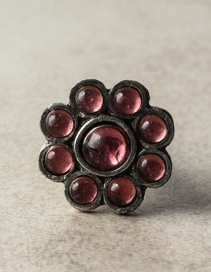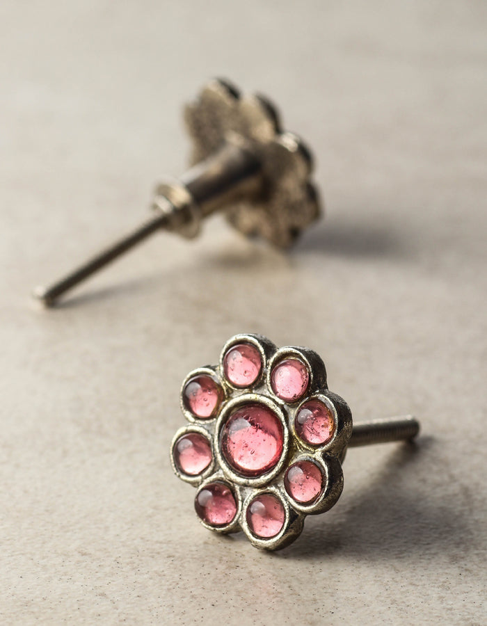 Nine Half Cut Salmon Pink Beaded Bathroom Knob On Metal Base