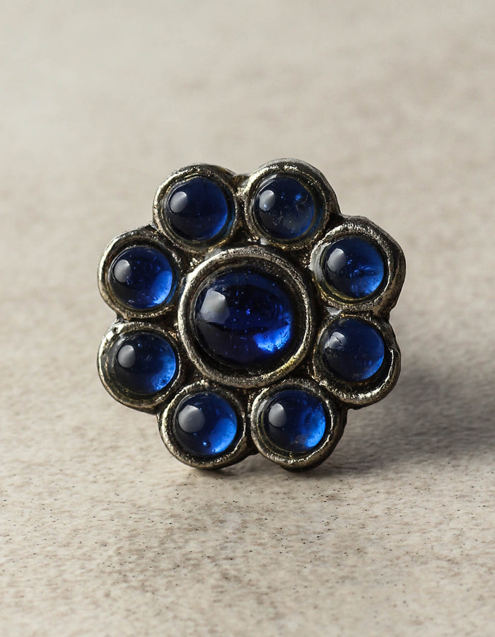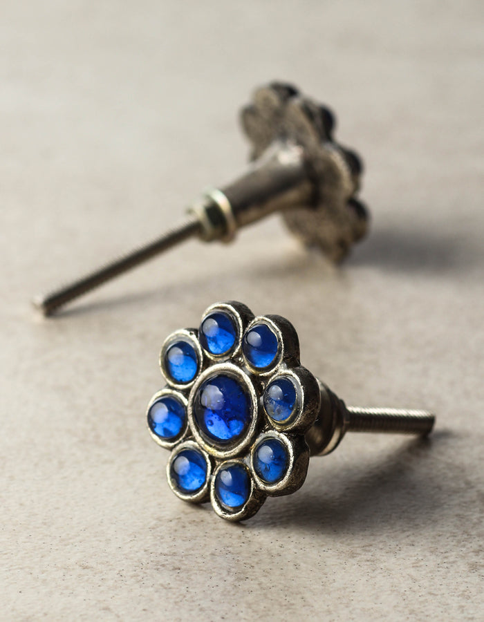 Nine Half Cut Transparent Blue Beaded Cupboard Knob