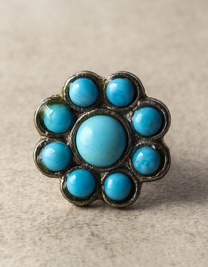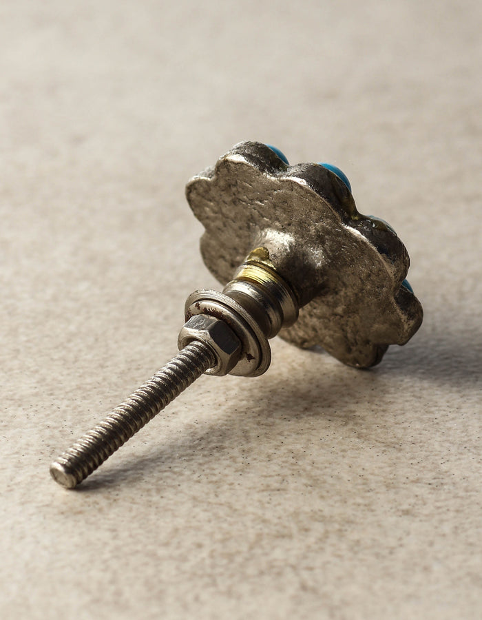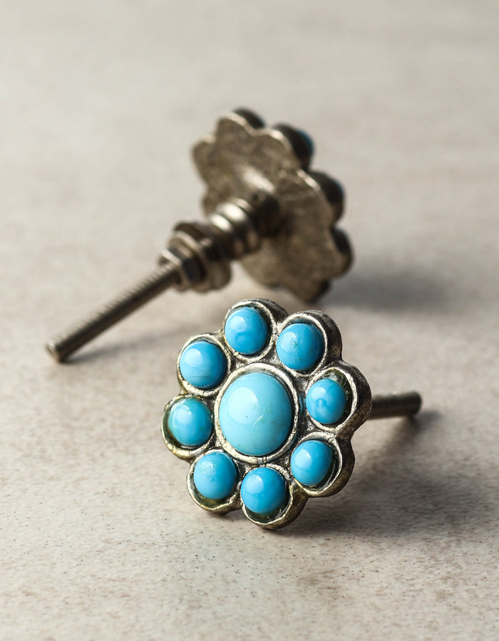 Nine Half Cut Turquoise Beaded Metal Base Bathroom Knob