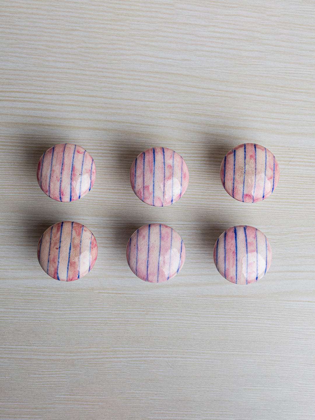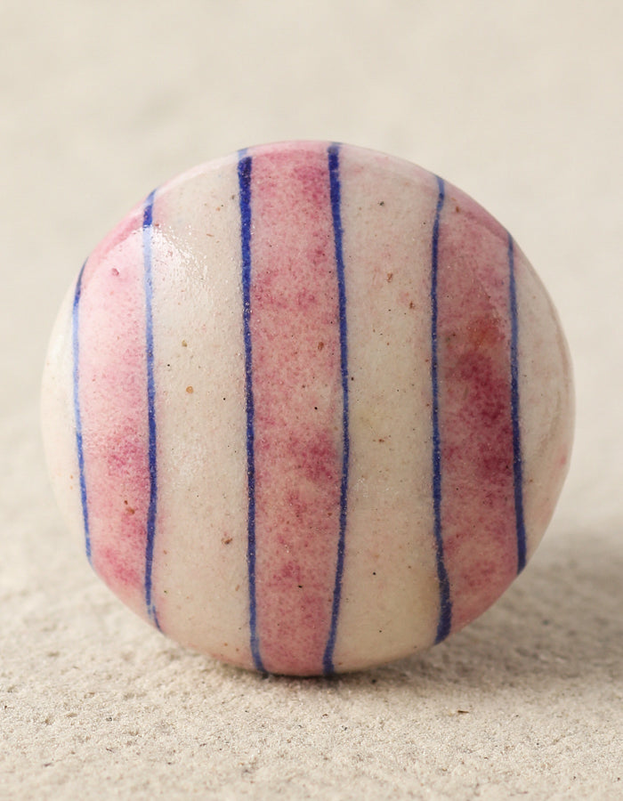 Handmade Pink And White Stripes Kitchen Cabinet Knob