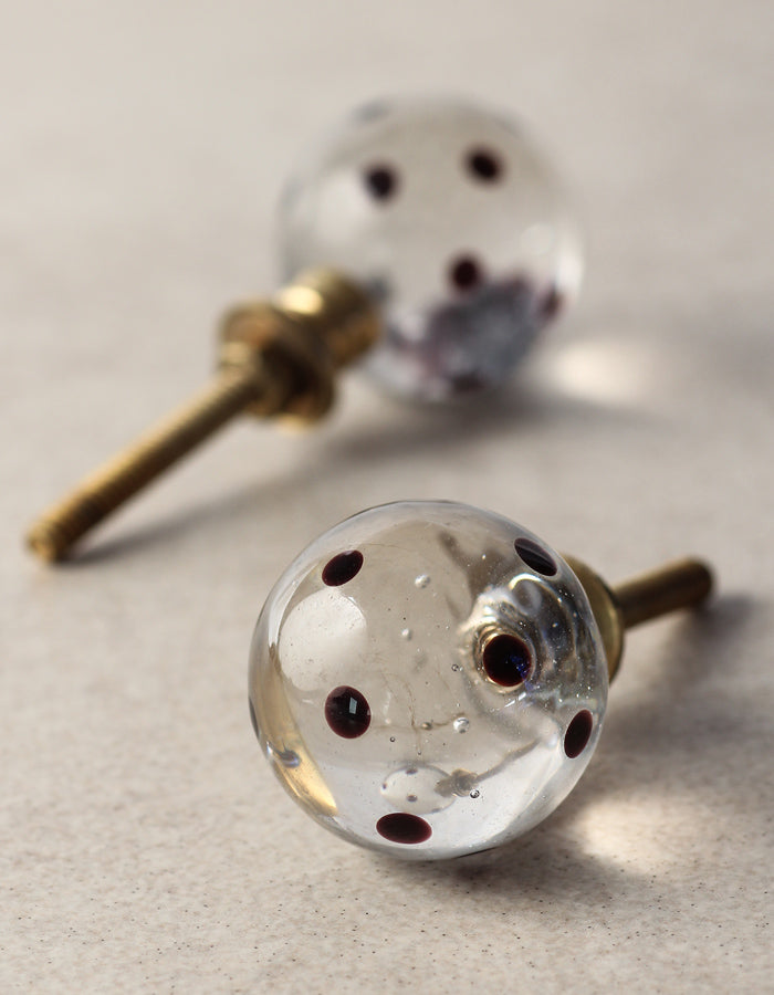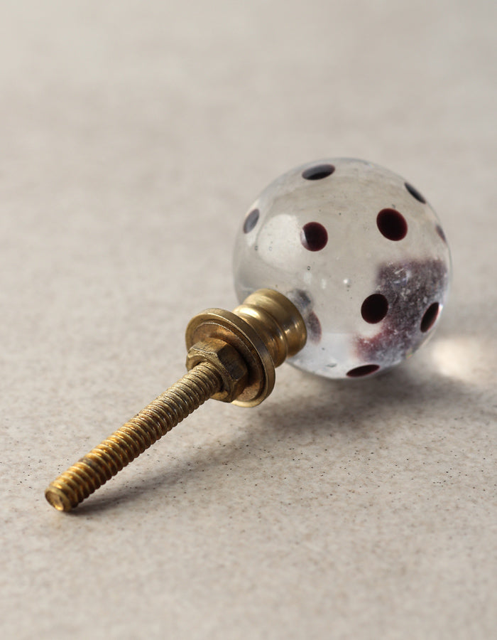 Antique Clear Round Shaped Dresser Cabinet Knob With Black Polka-Dots