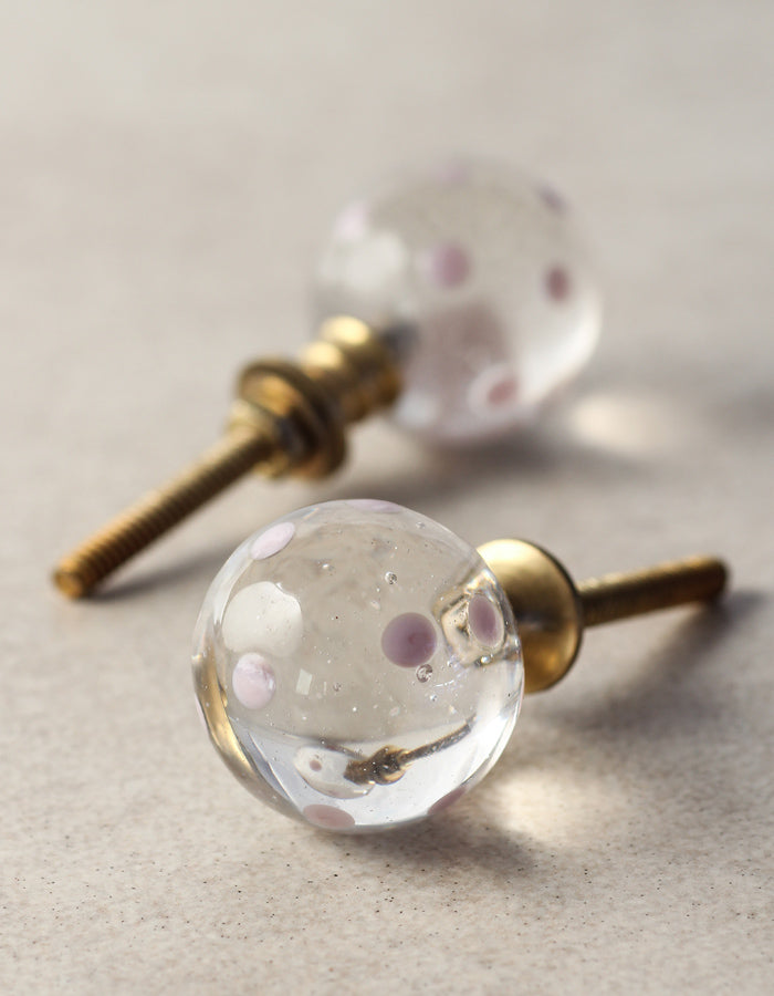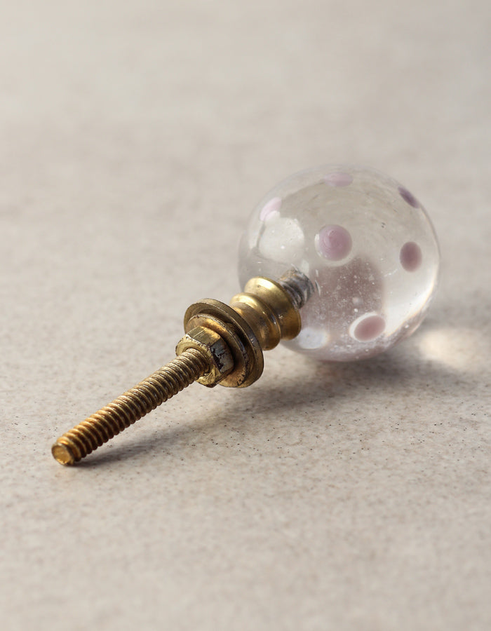 Clear Round Shaped Drawer Cabinet Knob With Pink Polka-Dots