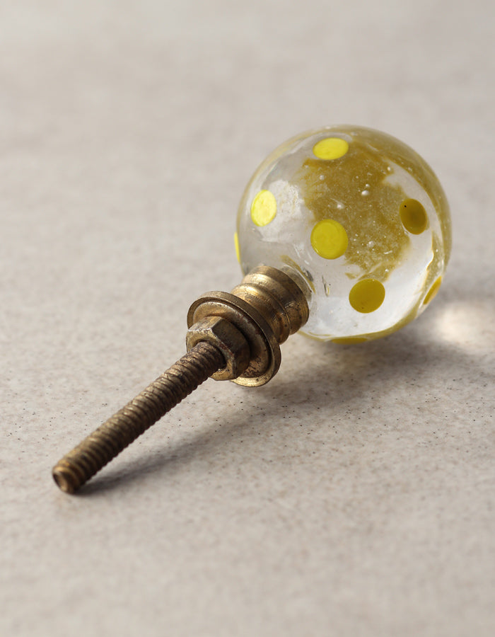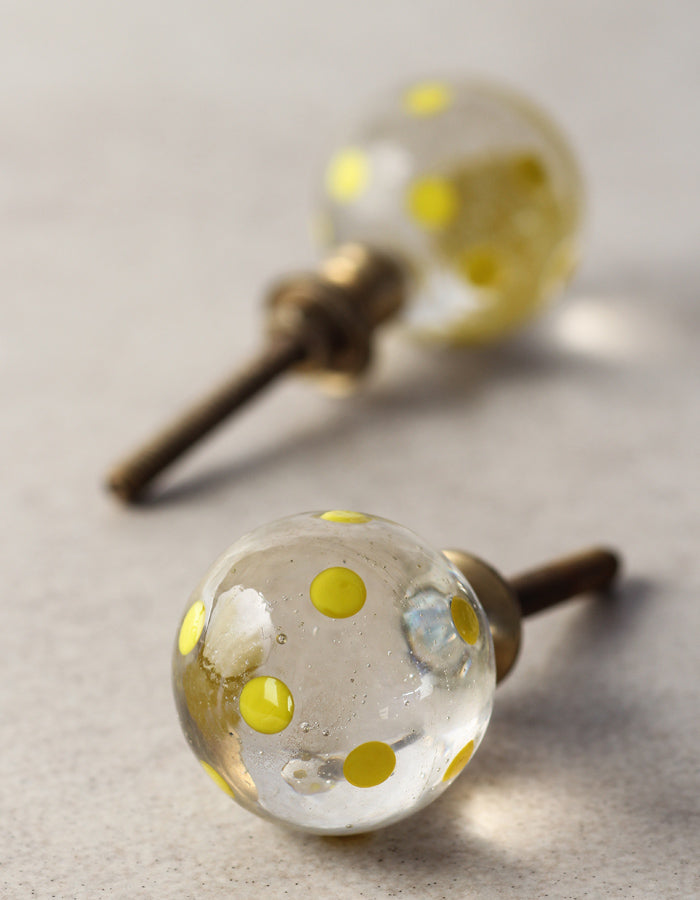 Stylish Transparent Round Shaped Drawer Cabinet Knob With Yellow Polka-Dots