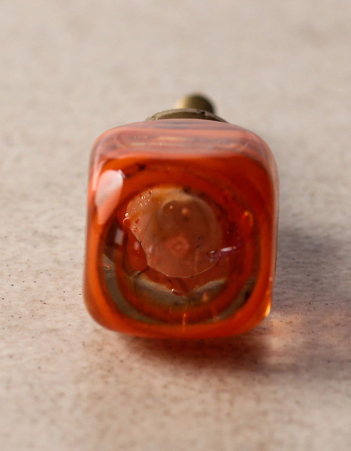 Antique Clear Round Glass Drawer Cabinet Knob With Orange Spiral