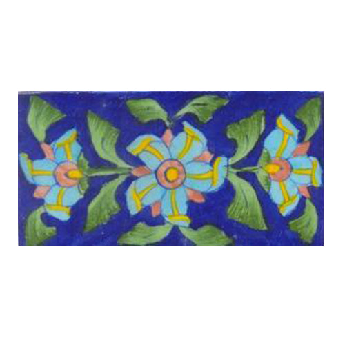 Three turqouise flower lime green leaves with blue tile