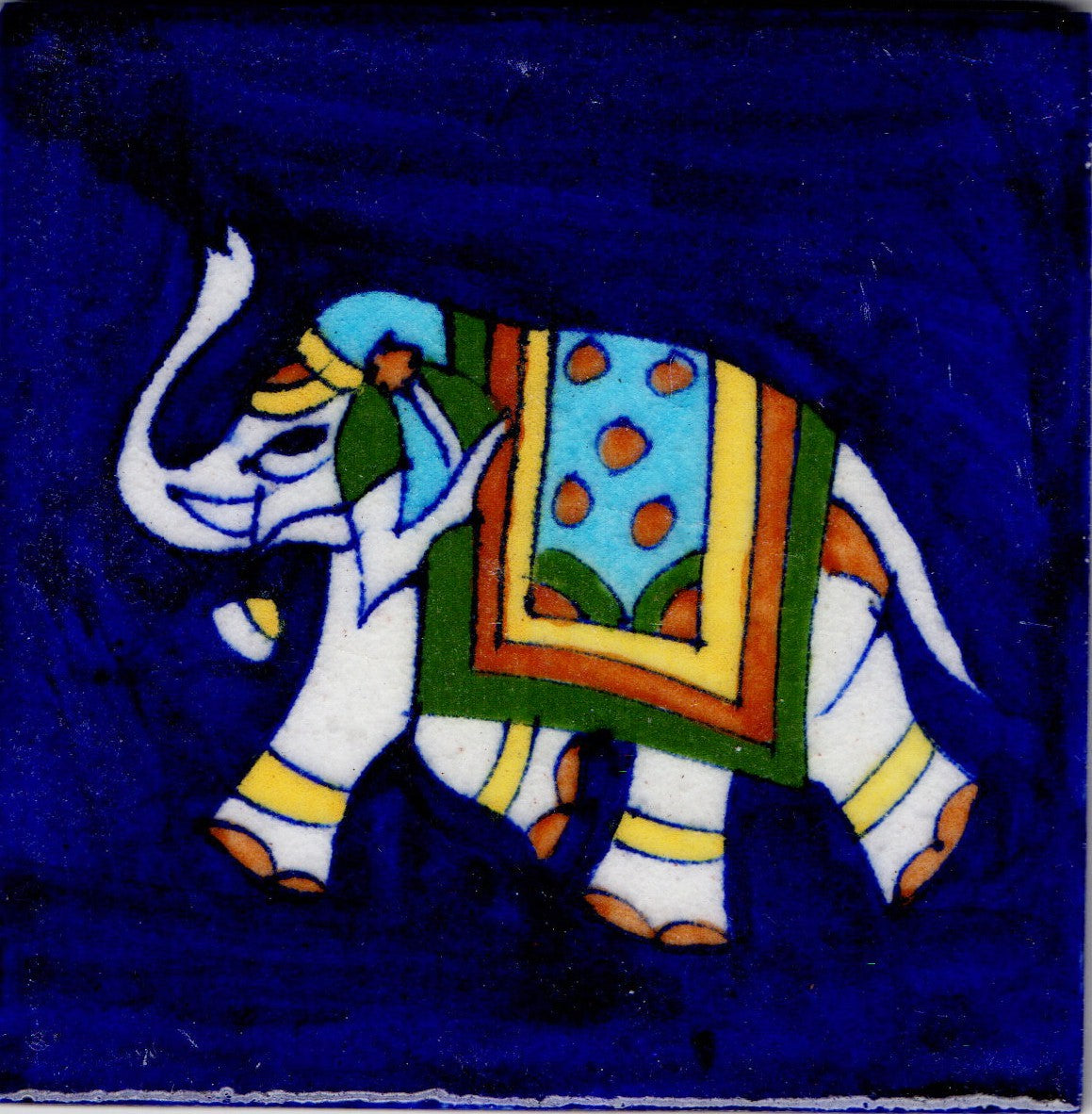 Elephant Design Handpainted Blue Pottery Tile