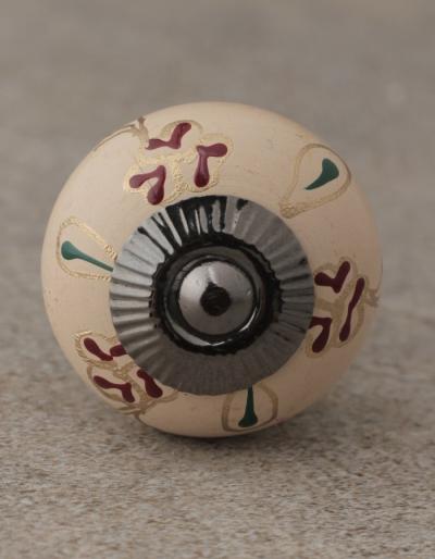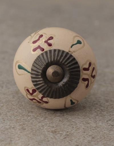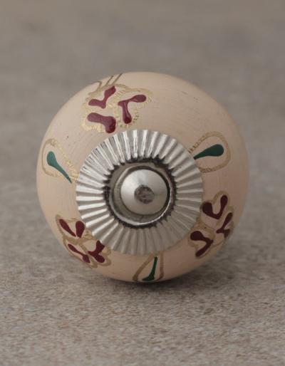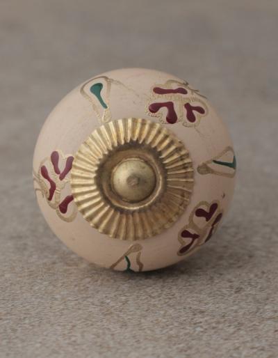Pink Wooden knob with Golden and Red design, perfect for your kitchen and bathroom cabinets! The knob is 1.5" in diameter and includes screws for 5Delivery time is normally 5 to 7 business days. Minimum order of three knobs - mix and match.