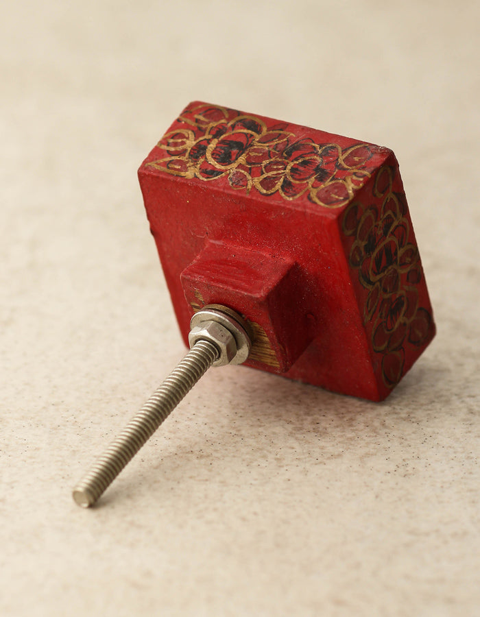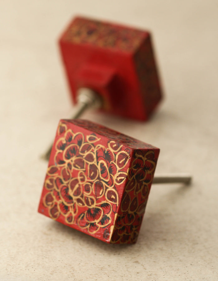 Red and Black Square Wooden Knob, perfect for your kitchen and bathroom cabinets! The knob is 1.3" in diameter and includes screws for installation. Delivery time is normally 5 to 7 business days. Minimum order of three knobs - mix and match.