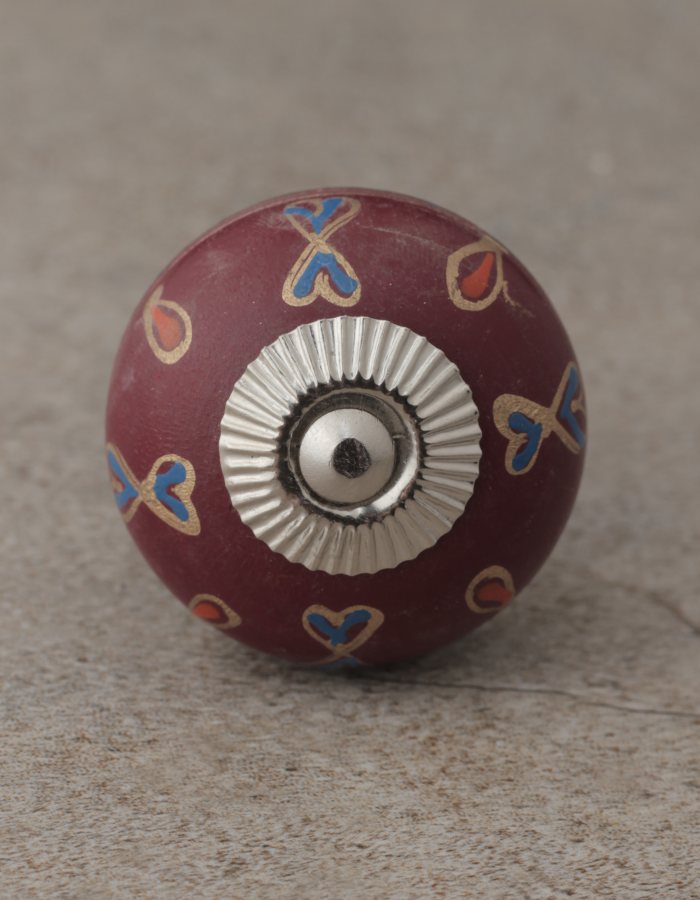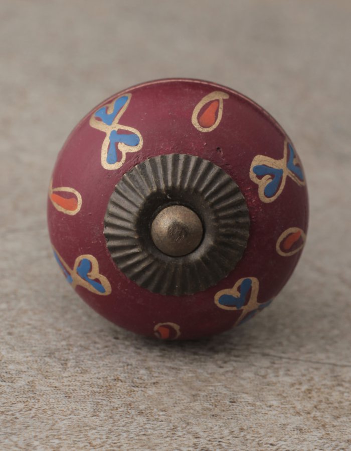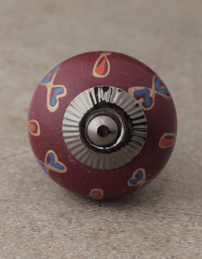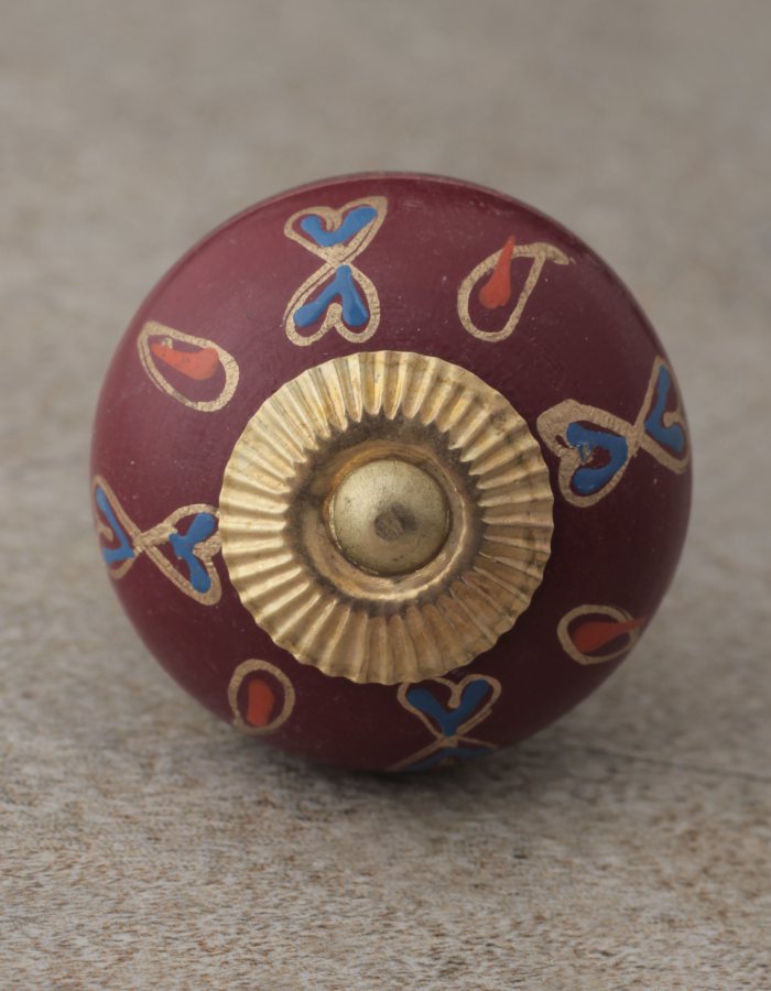 Red and Dark Red Wooden knob Dubble Stripes with golden and Blue design, perfect for your kitchen and bathroom cabinets! The knob is 1.5" in diameter and includes screws for 5Delivery time is normally 5 to 7 business days. Minimum order of three knobs - mix and match.