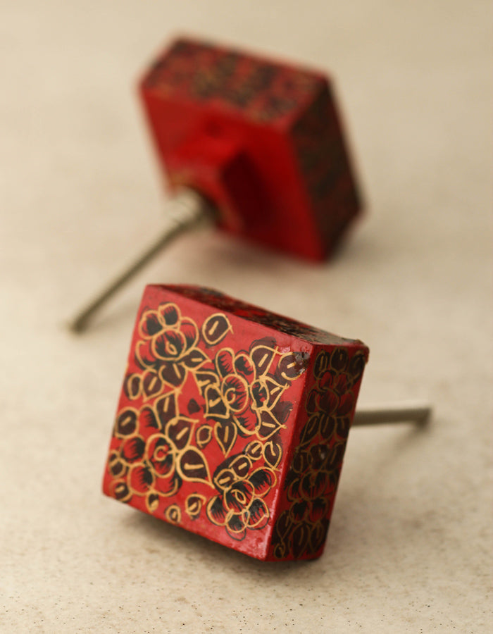Red Square Wooden Knob