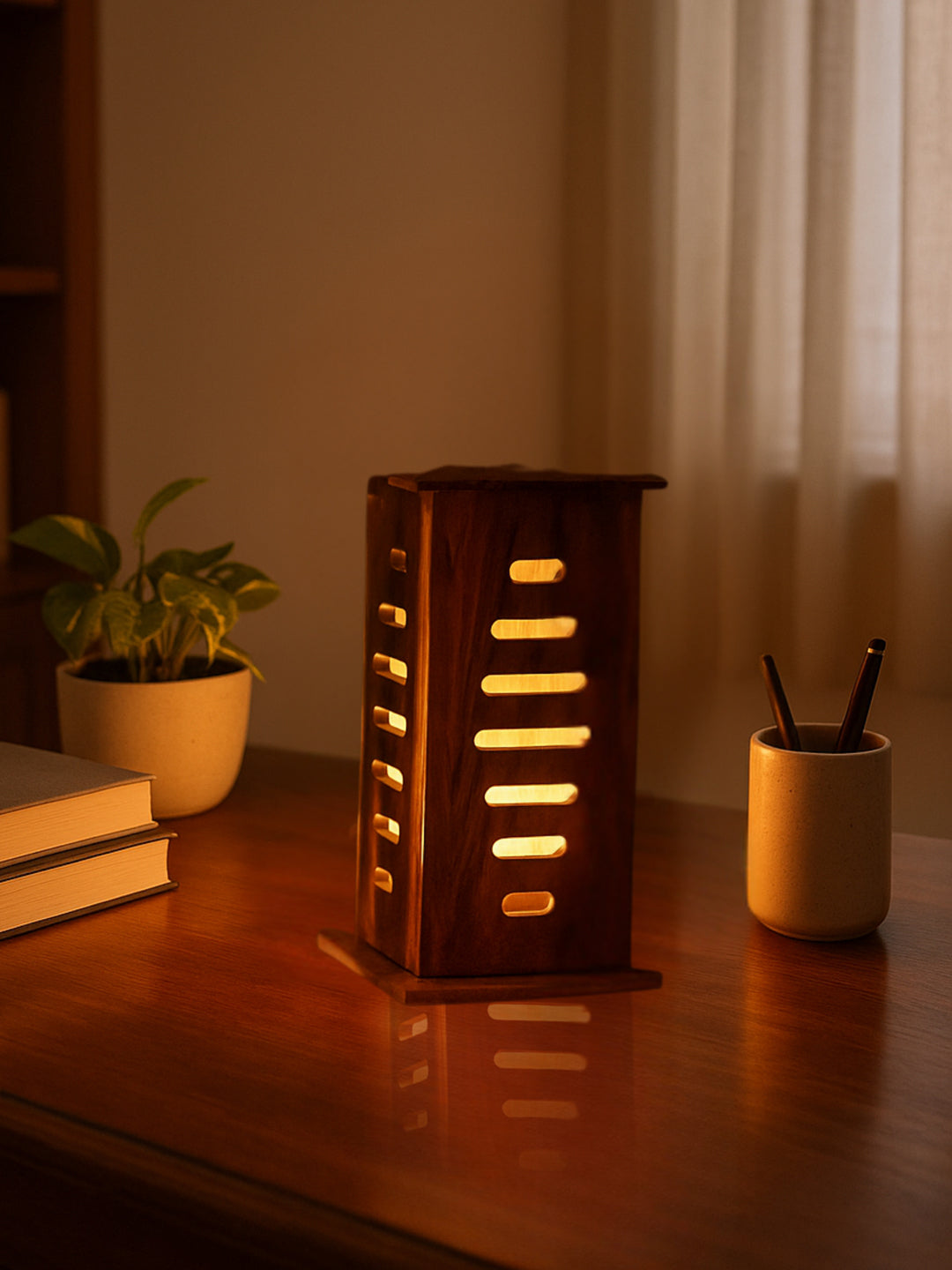 Beautiful Unique Wooden Table lamp (Size H: 9.5" x W: 4.9")
