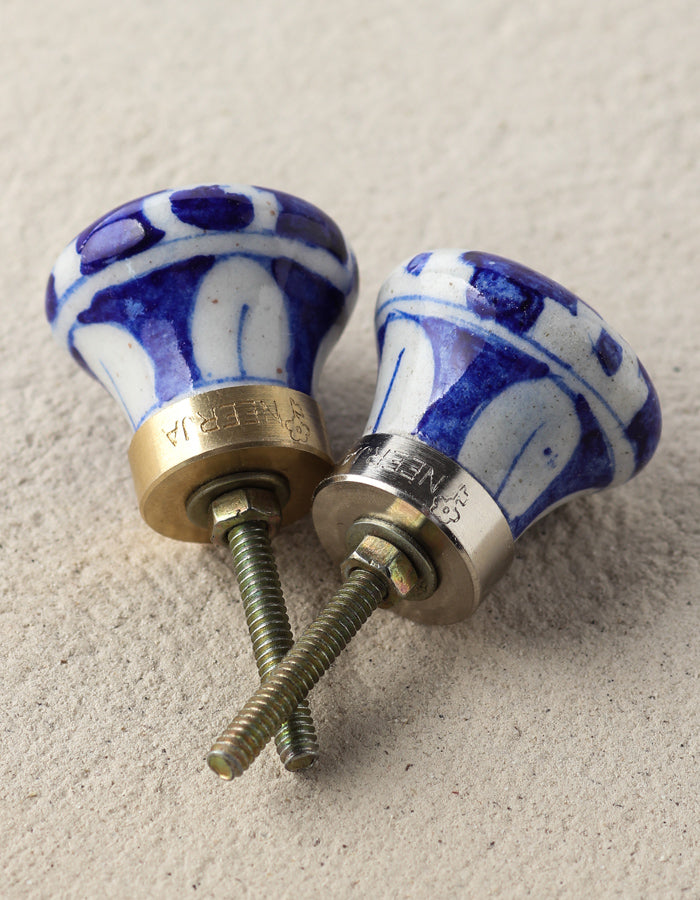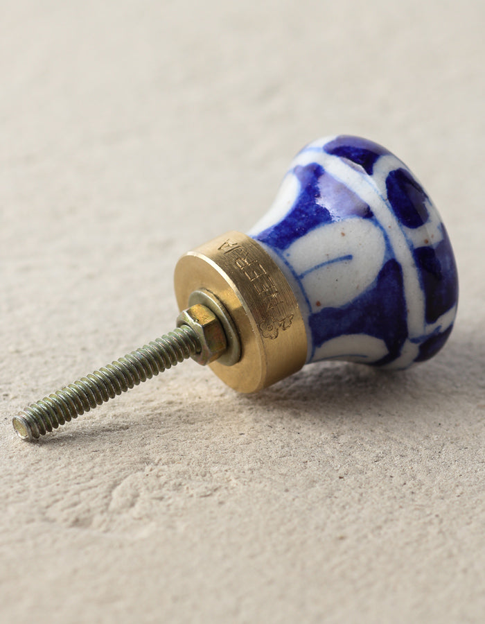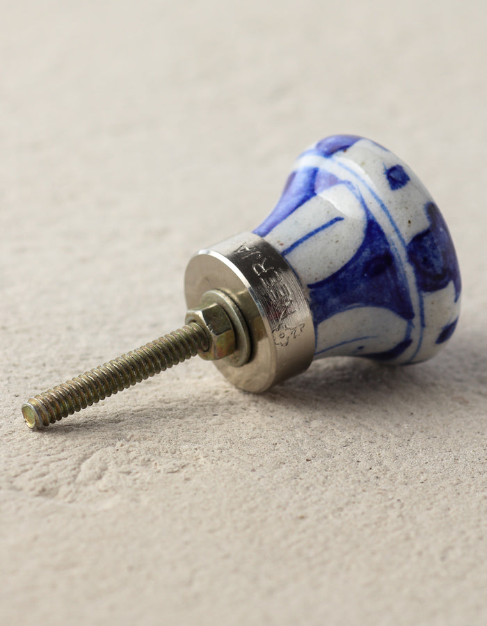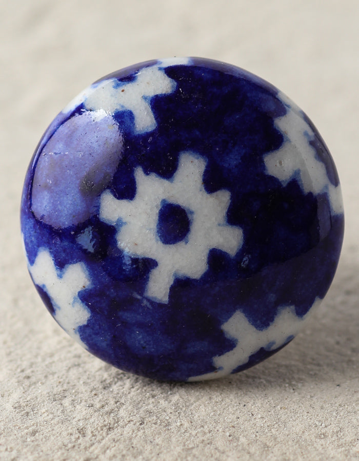 Antique Blue Ceramic Blue Pottery Door Knob With White Print