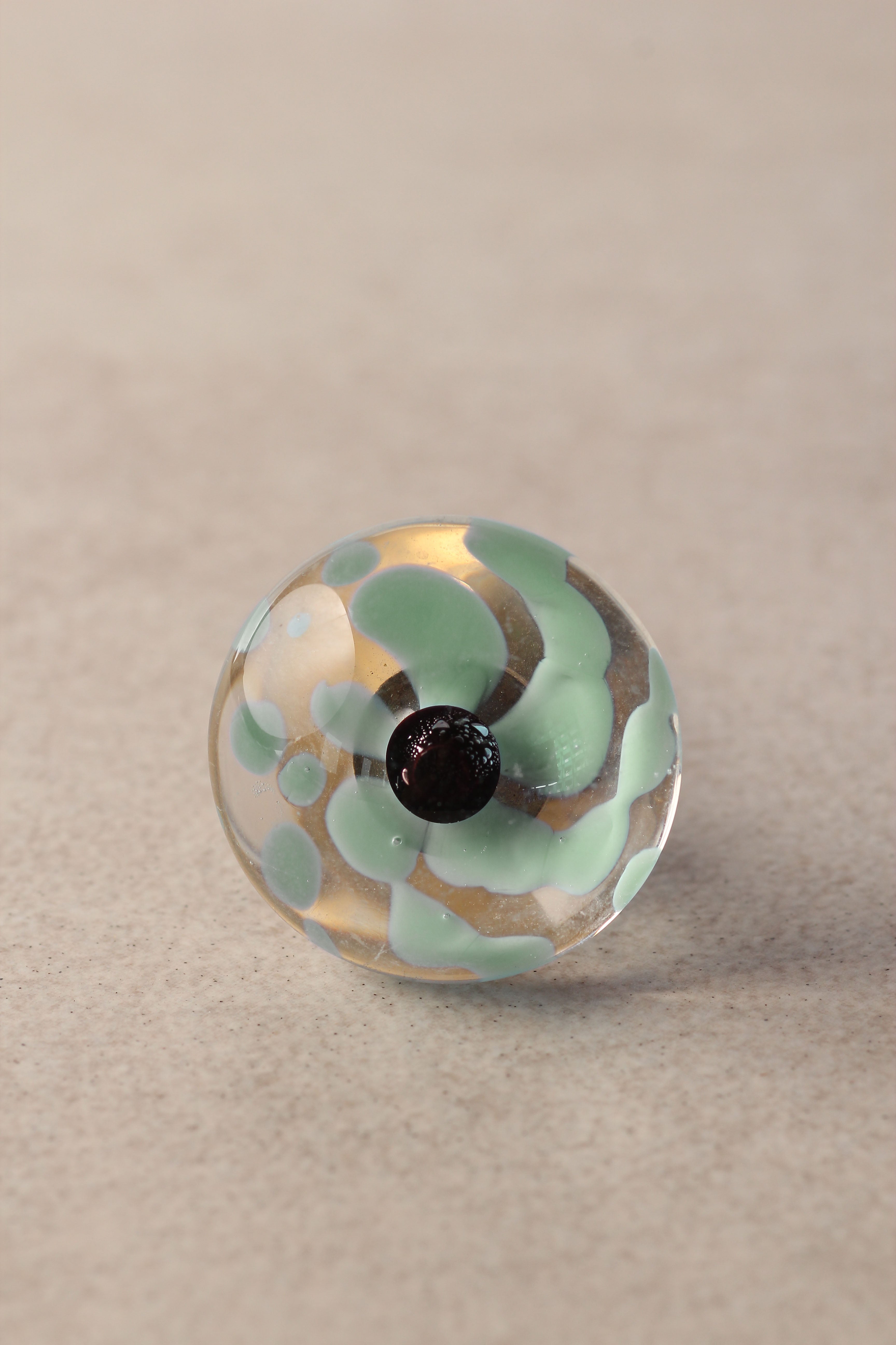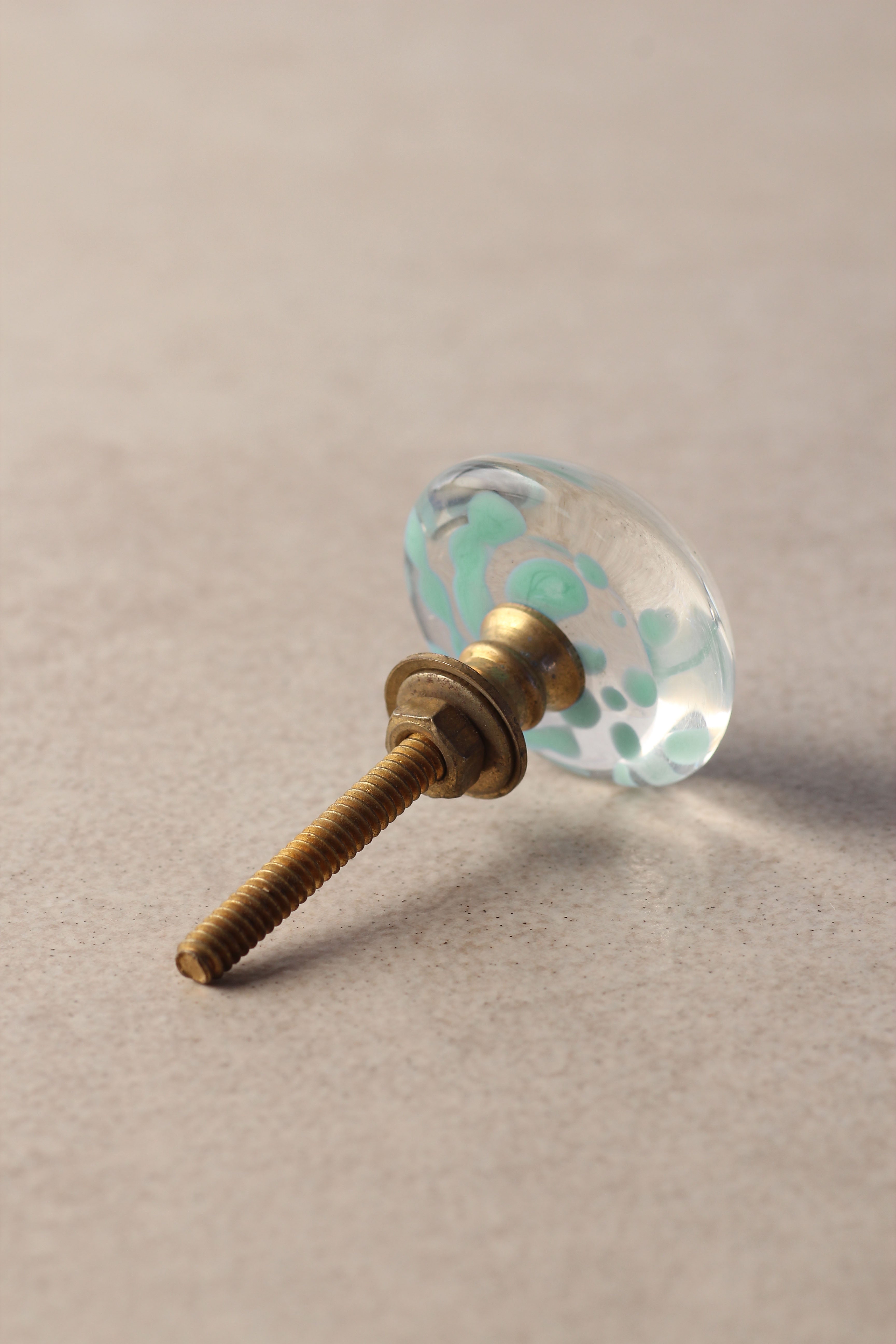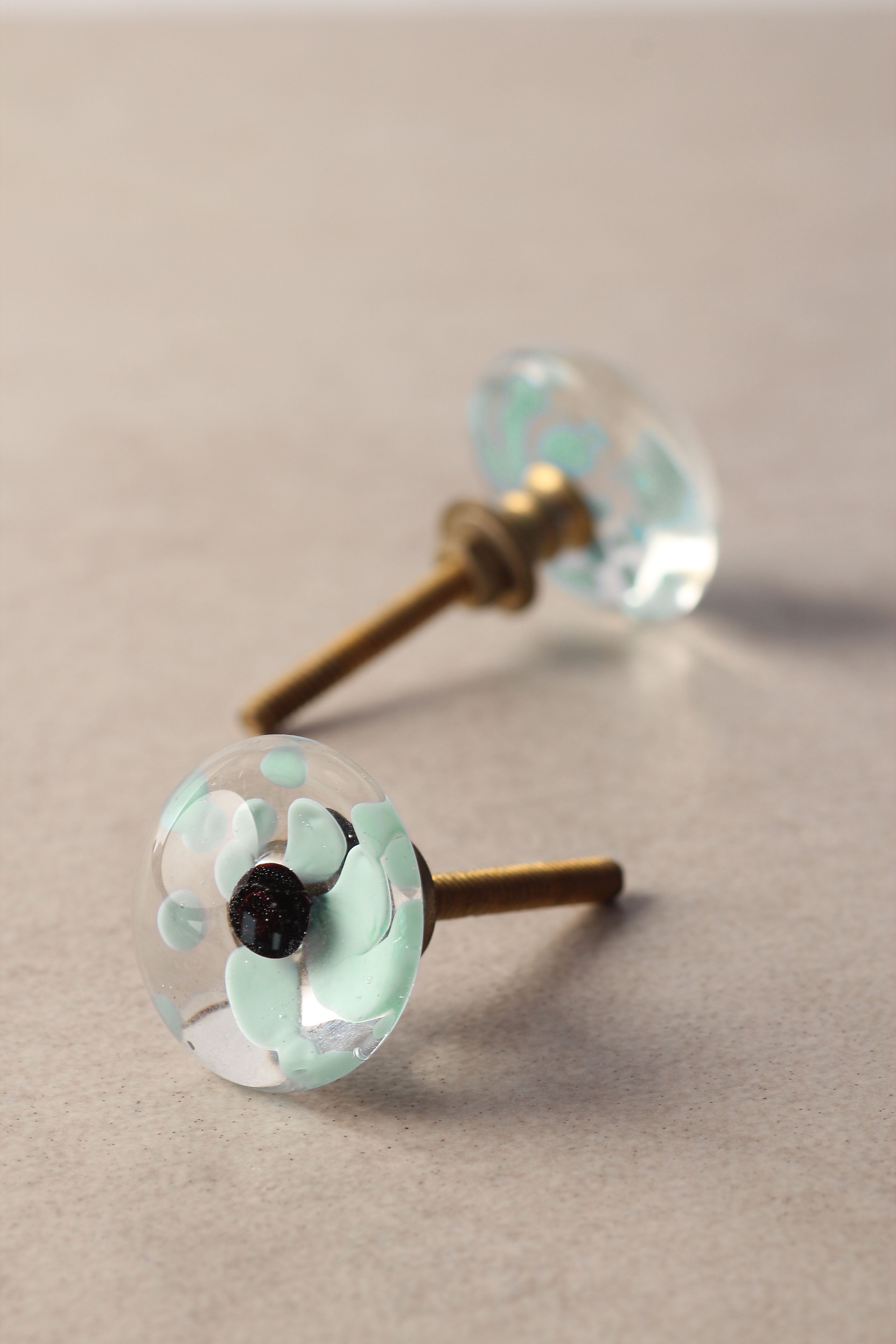 Antique Clear Round Drawer Cabinet Knob With Mint Green Prints