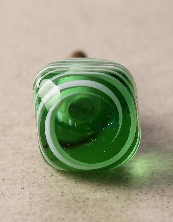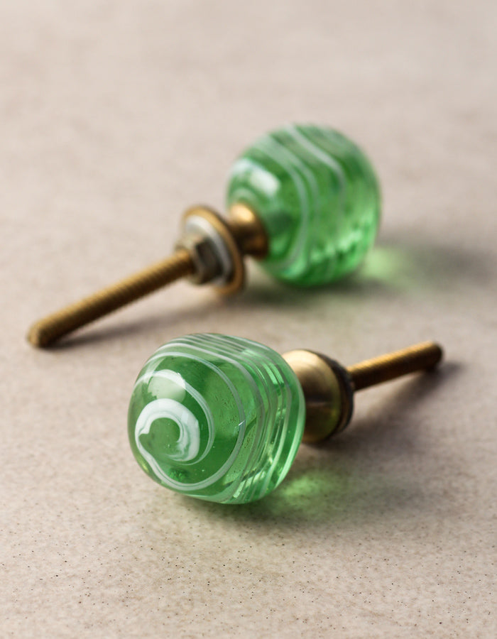 Antique Green Round Glass Drawer Cabinet Knob With White Swirl