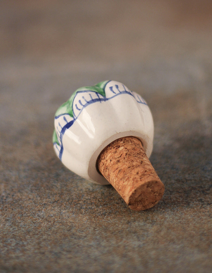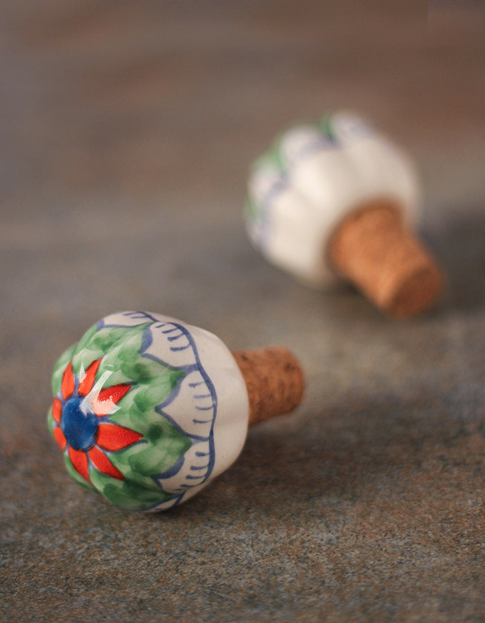 Antique Red And Green Flower Print Ceramic Wine Bottle Stopper is a beautifully crafted stopper which is perfect to spruce up your wine bottles for all your lavish parties and to preserve your leftover drinks. The ceramic Designer stopper is attached to a sturdy wooden cork fixture which can easily fit narrow mouth bottle.