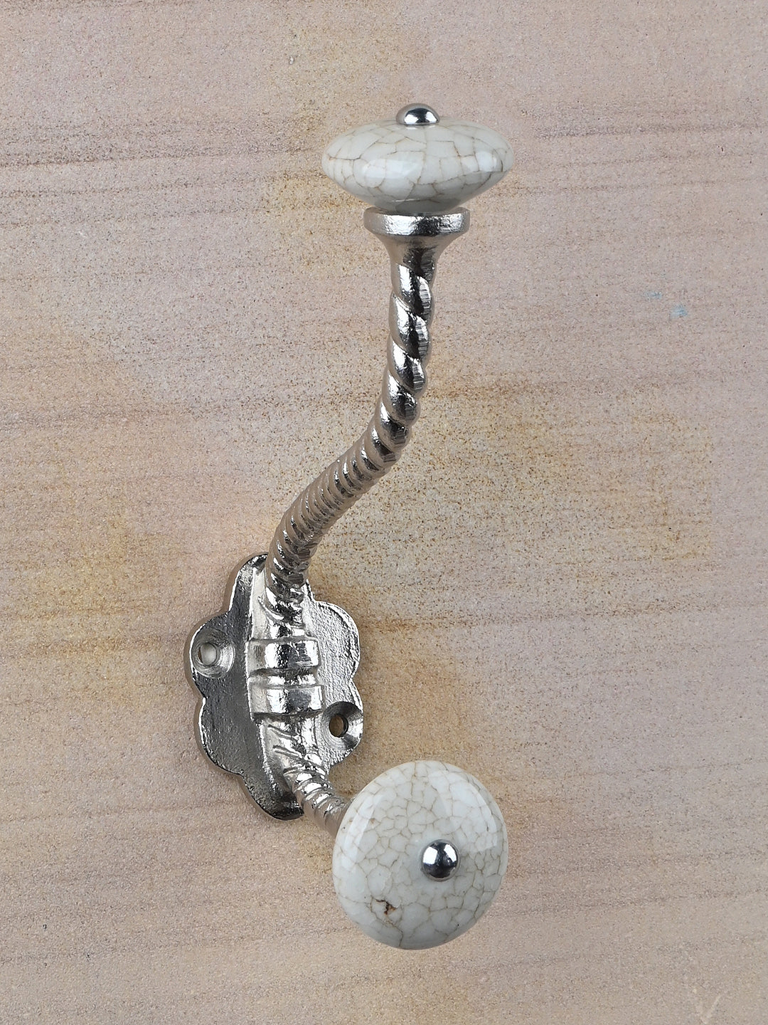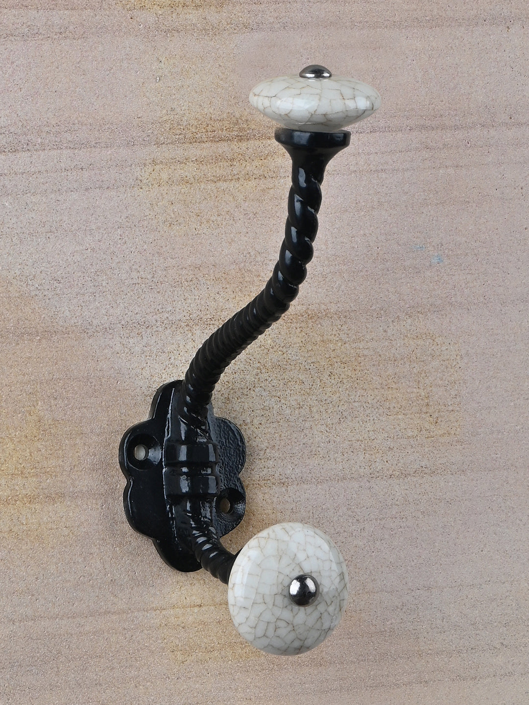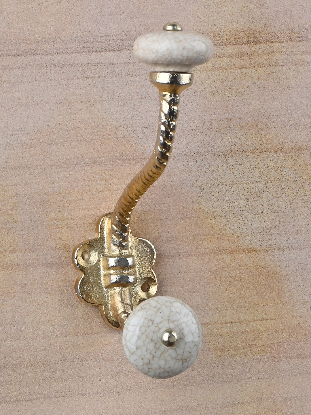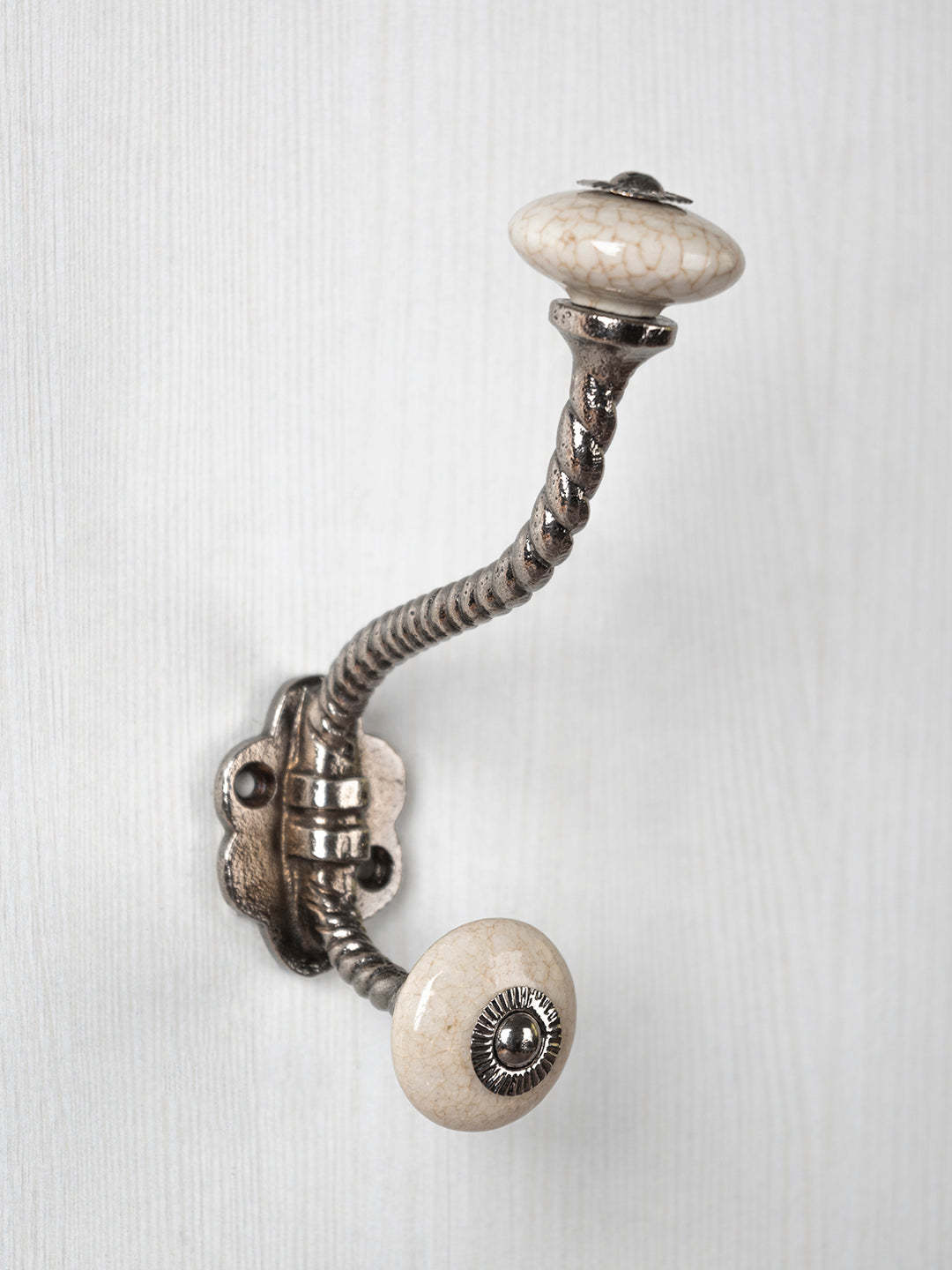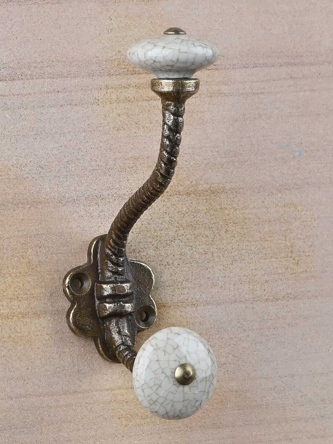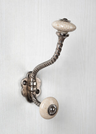 Antique Round Cracked Cream Knob With Metal Wall Hanger