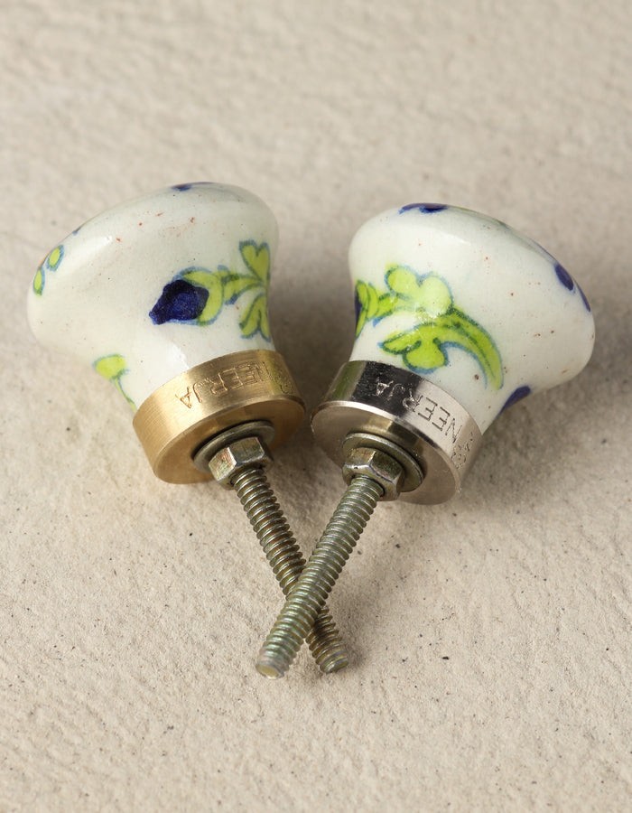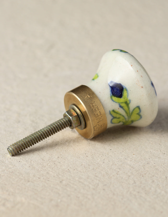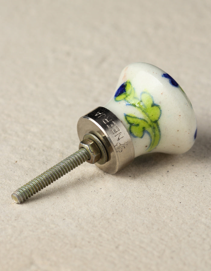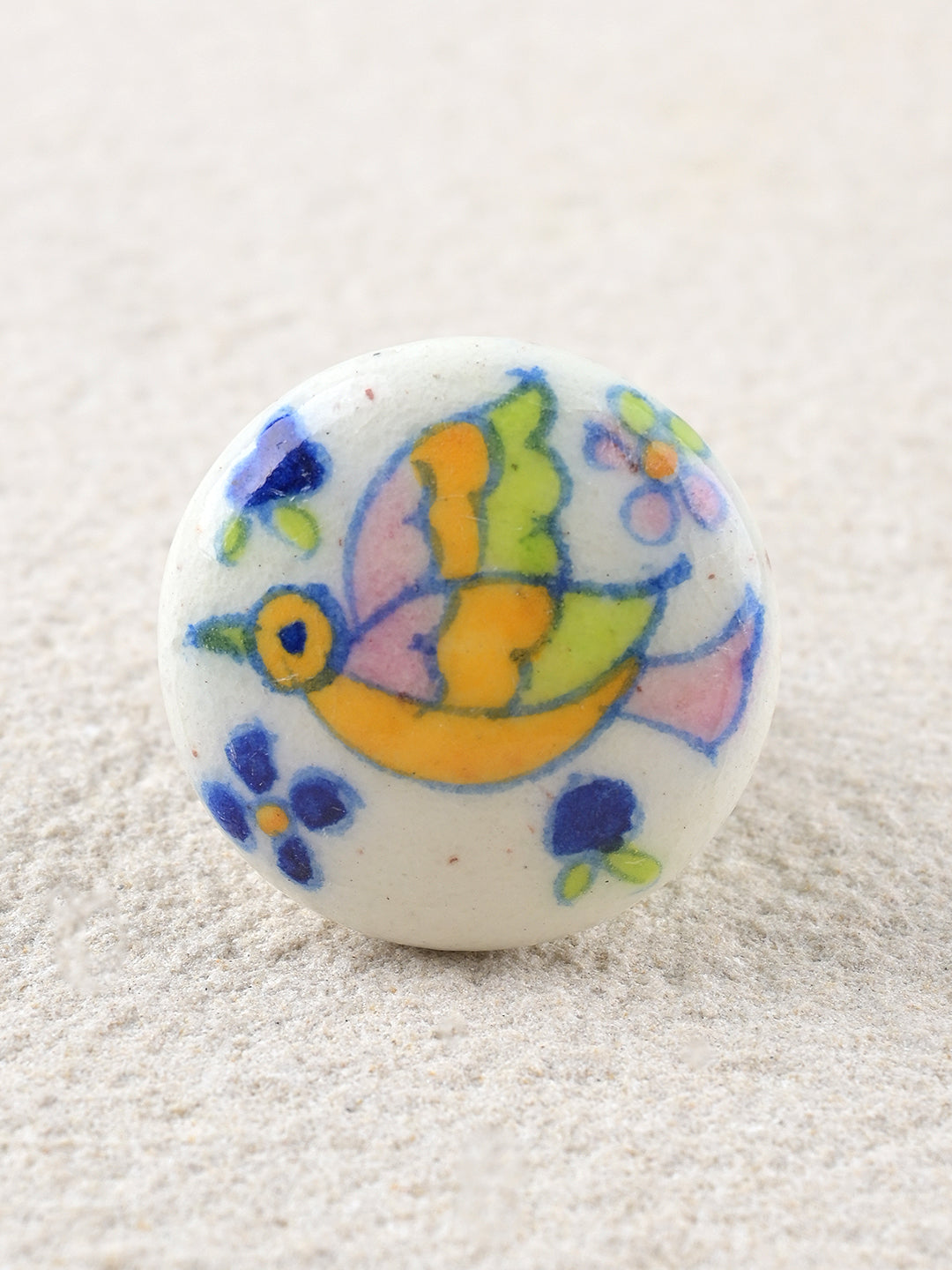 Antique White Ceramic Blue Pottery Knob With Hand Painted Bird Design