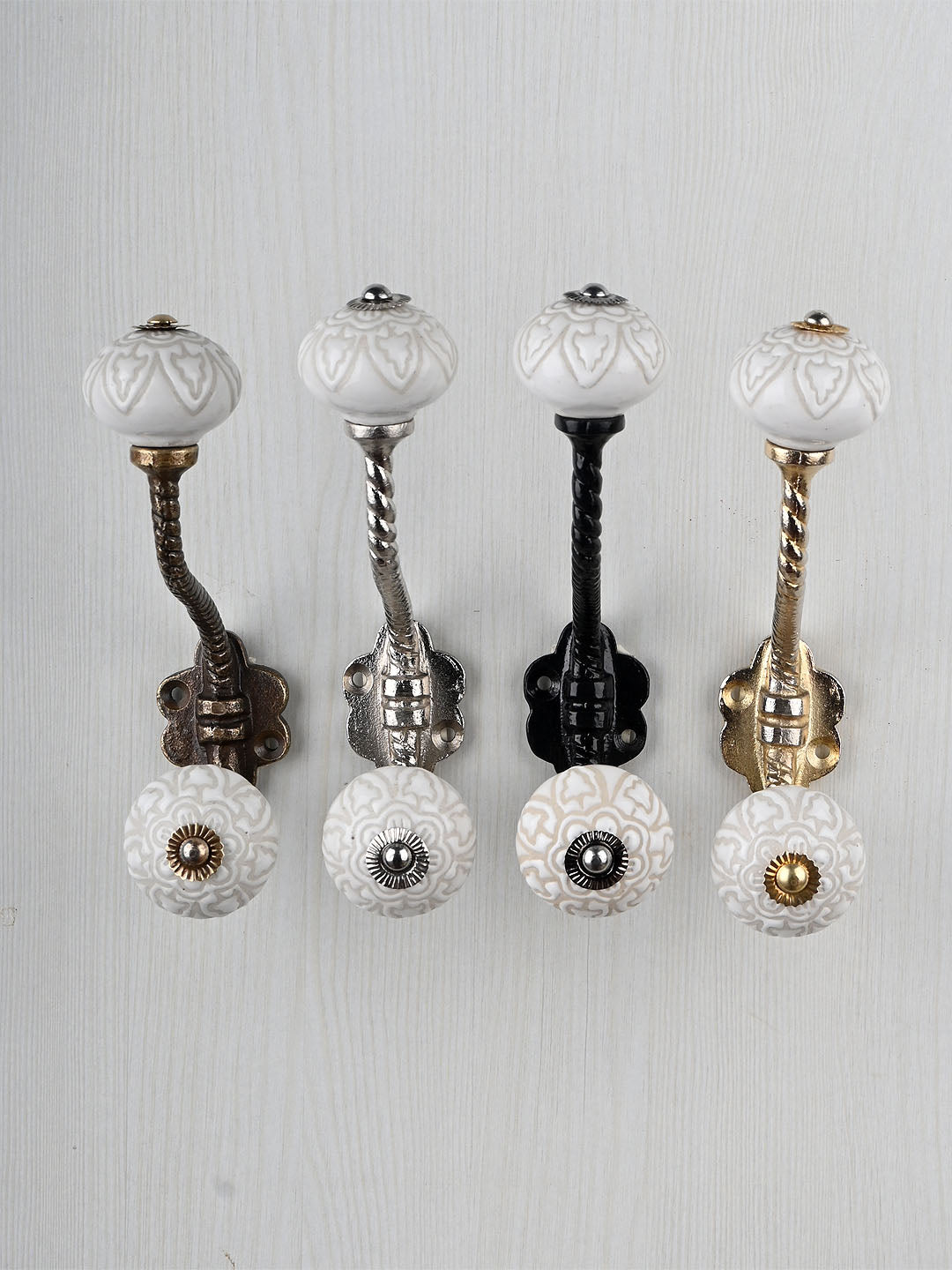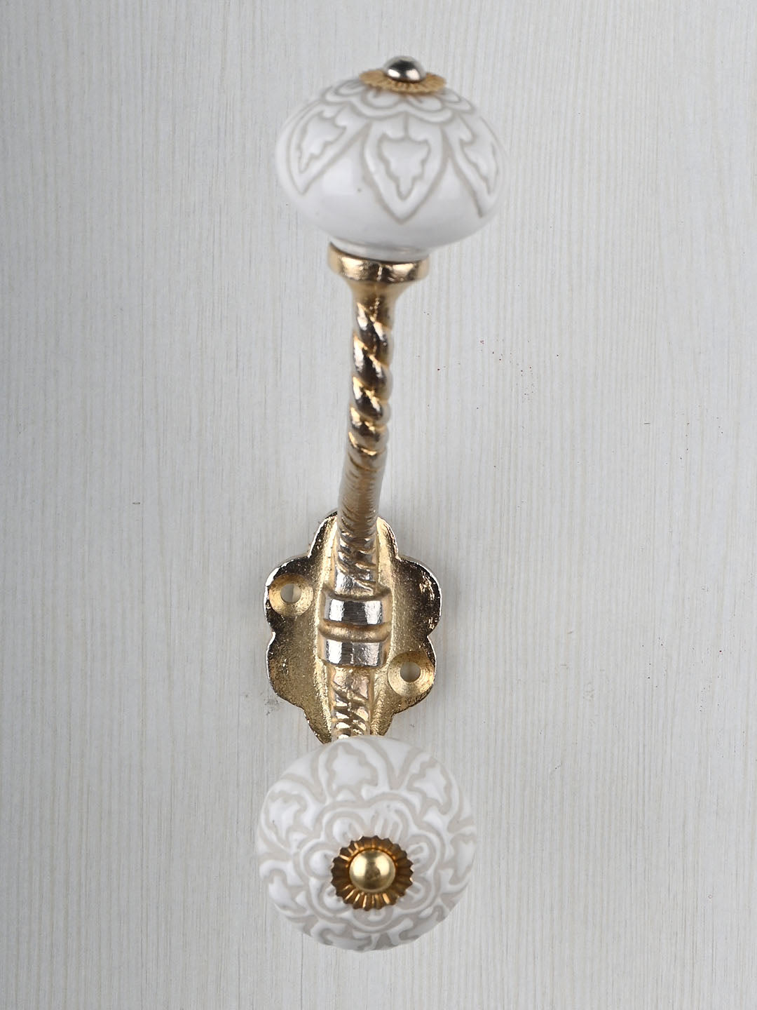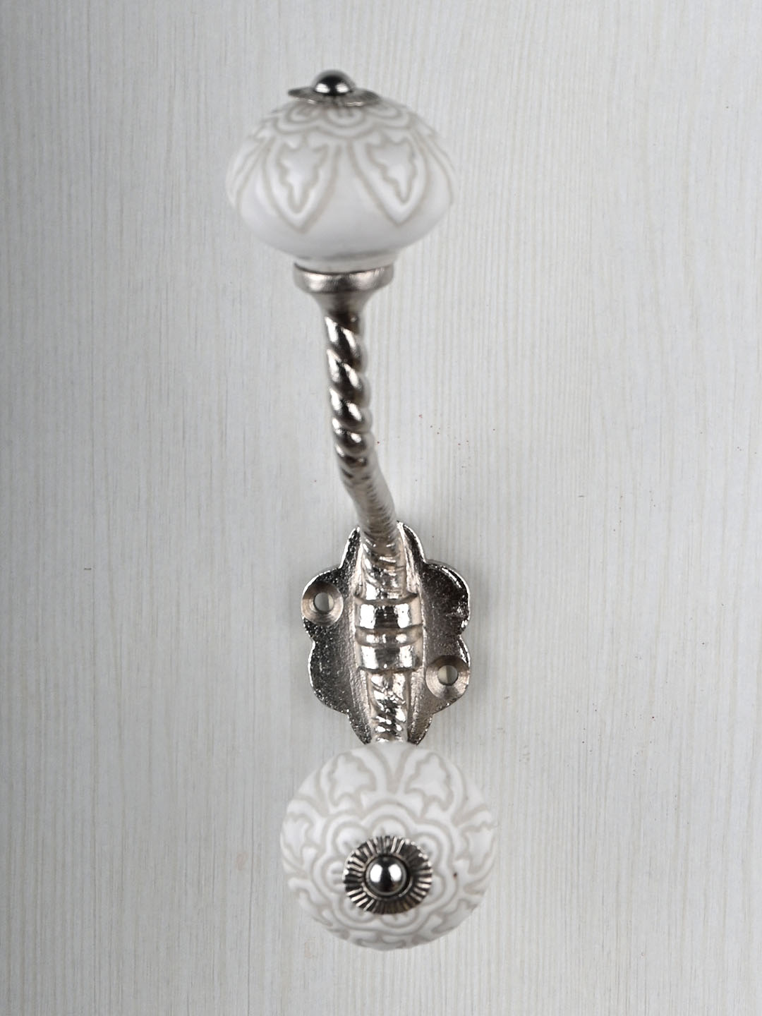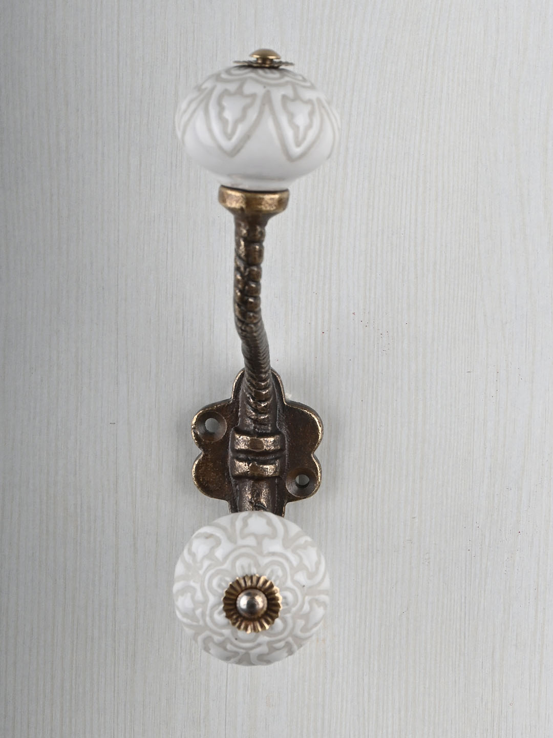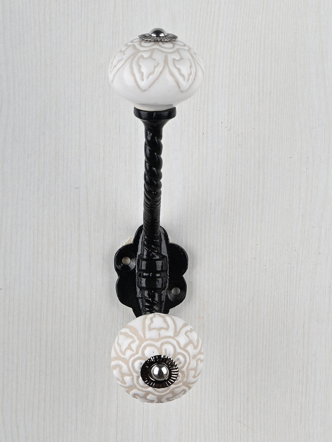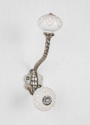 Antique White Ceramic Embossed Knob With Metal Wall Hanger
