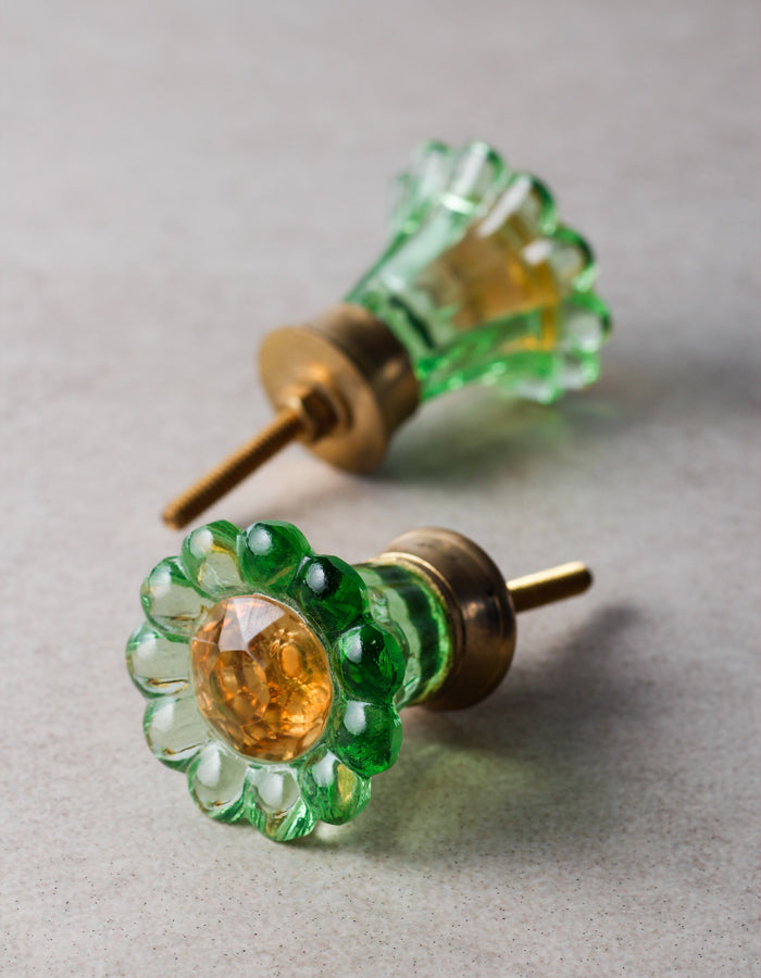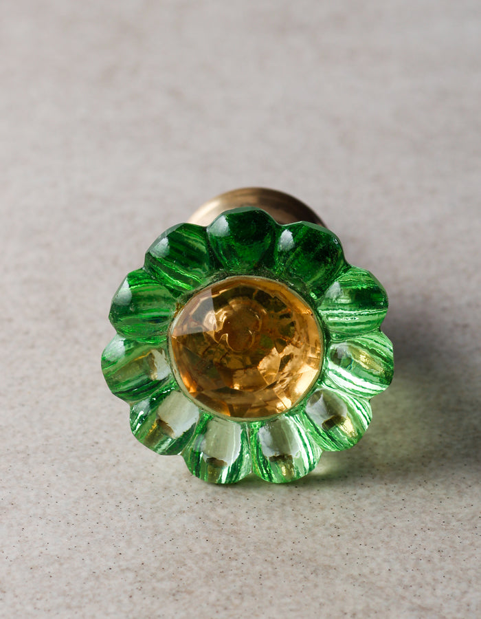 Aqua Green Daisy Flower Glass Dresser Cabinet Knob