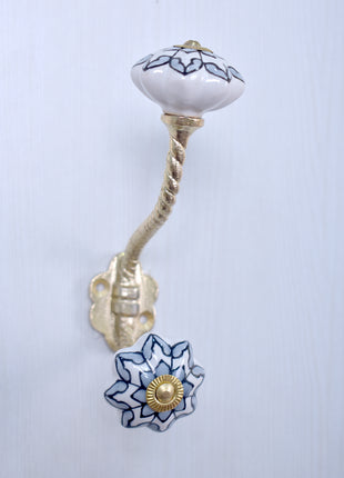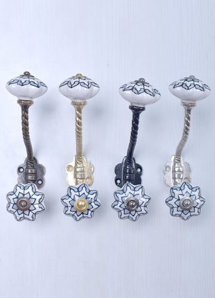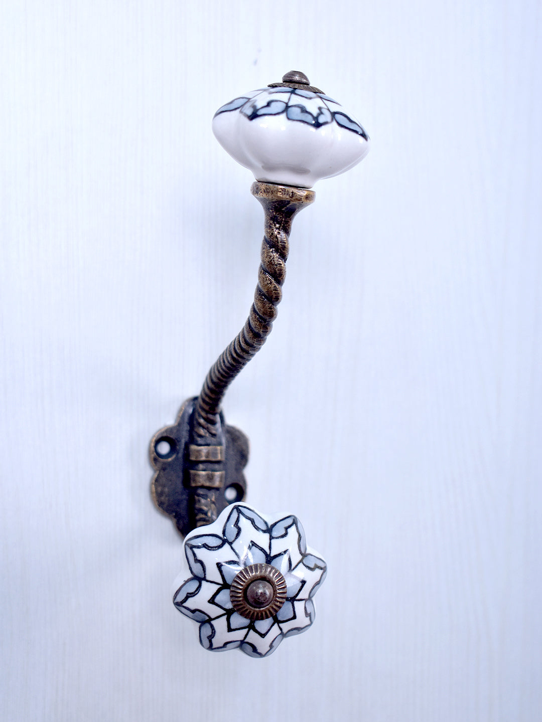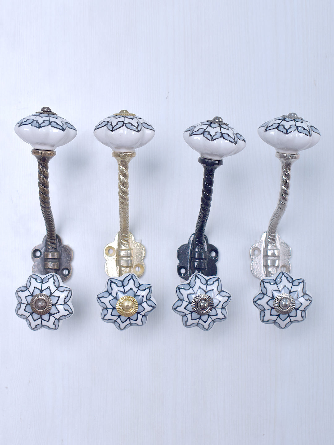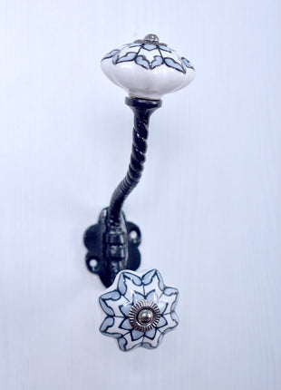 Beautiful Design On White Background Color Ceramic Knob With Metal Wall Hanger