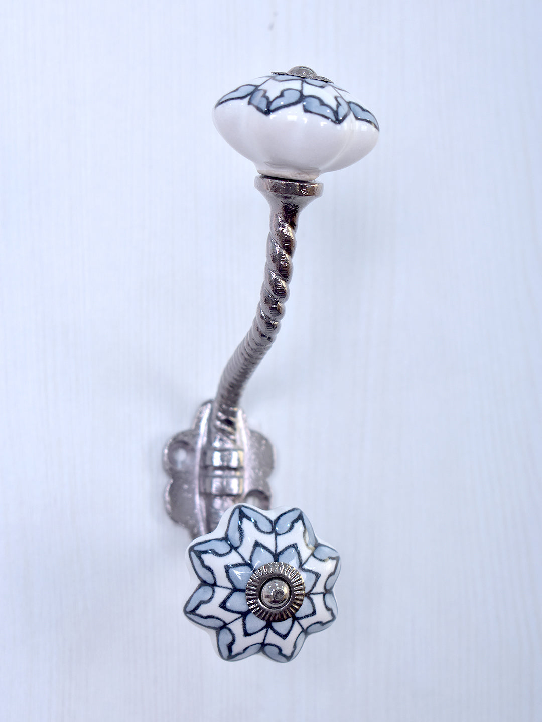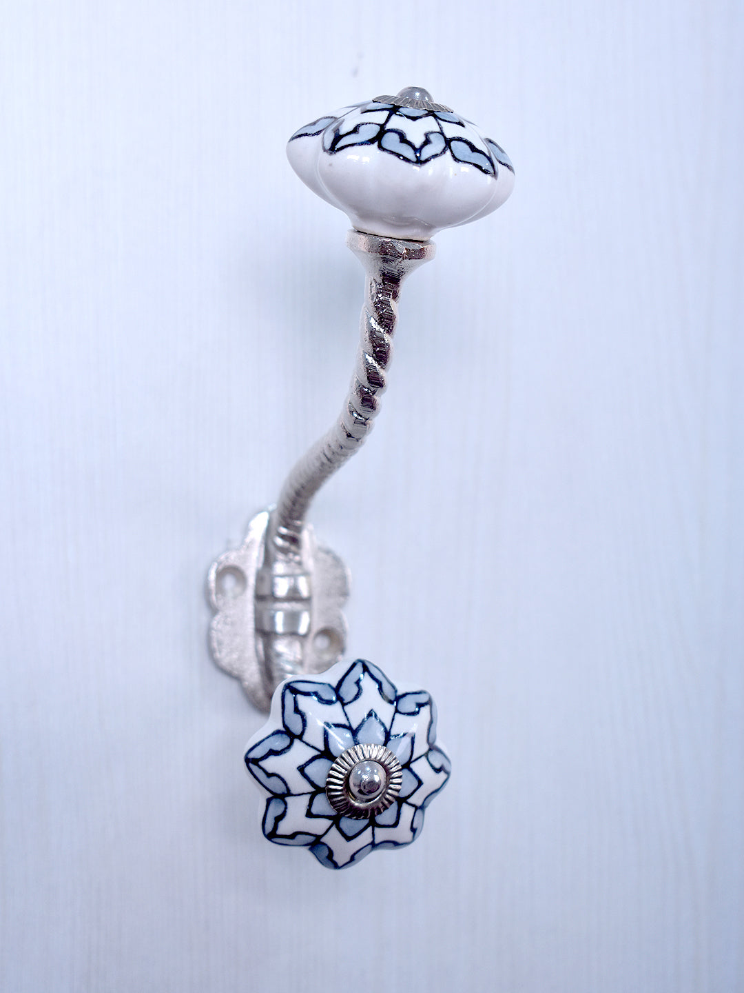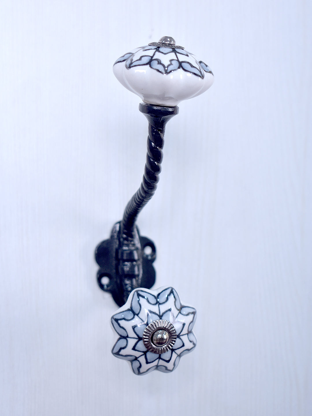 Beautiful Design On White Background Color Ceramic Knob With Metal Wall Hanger